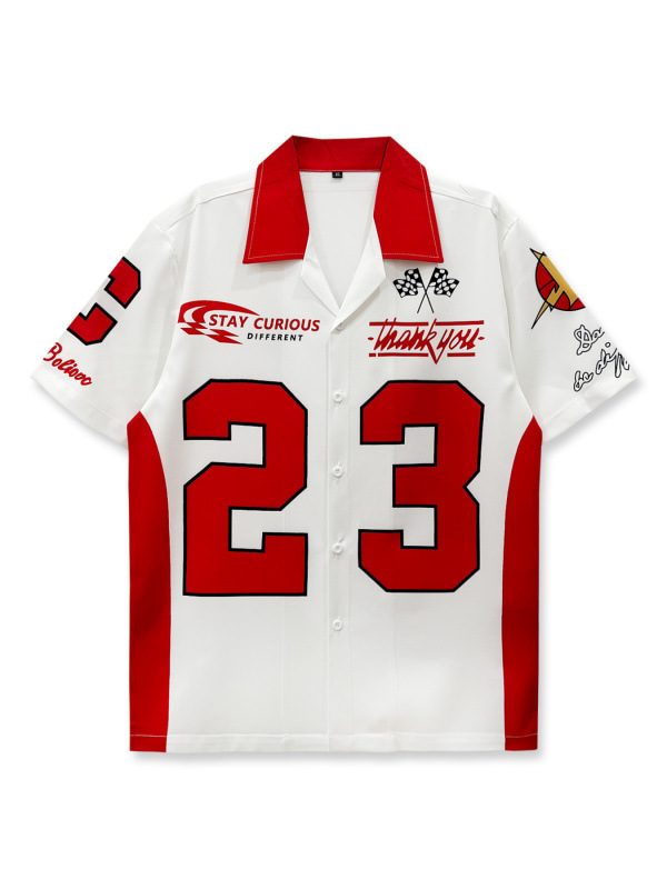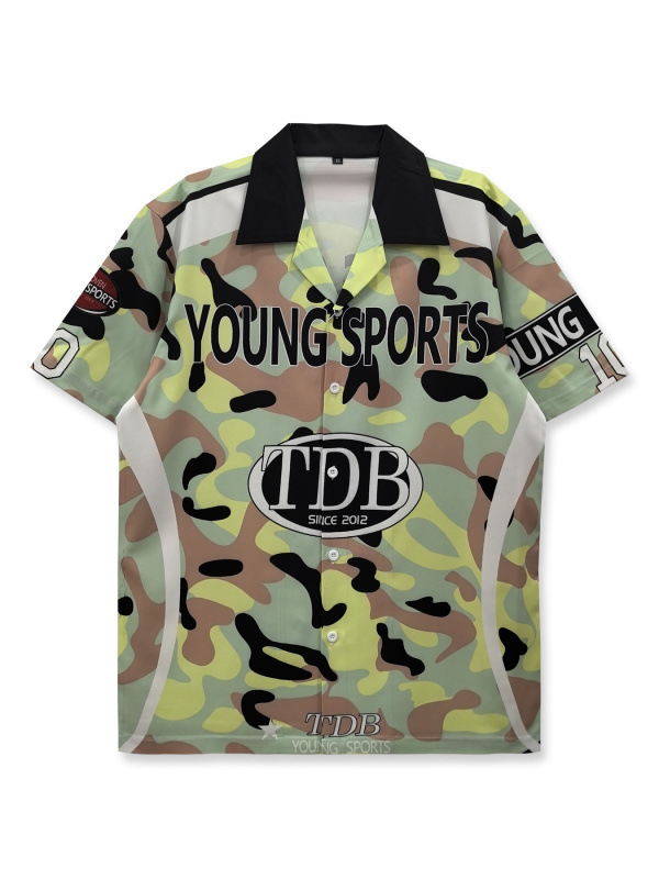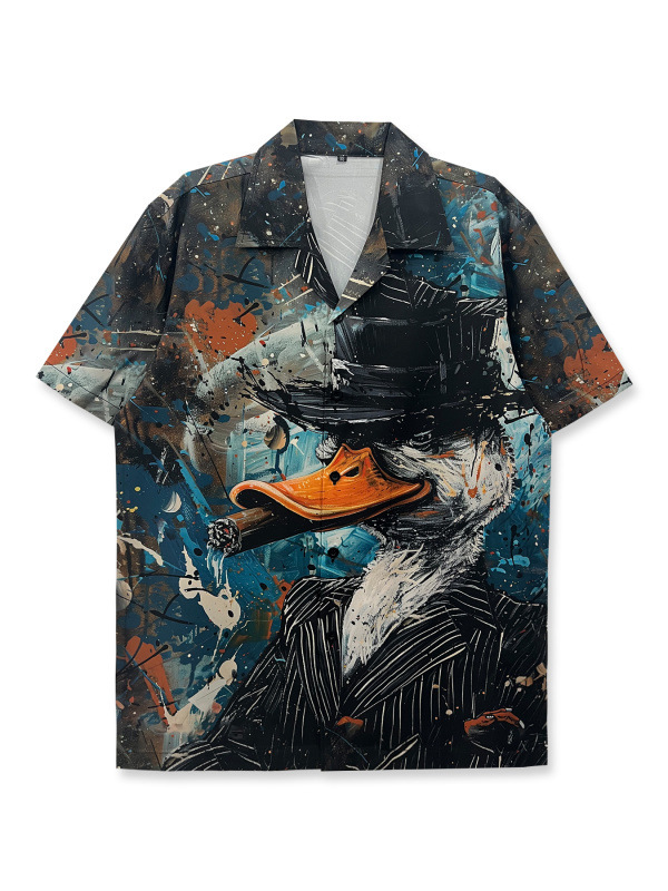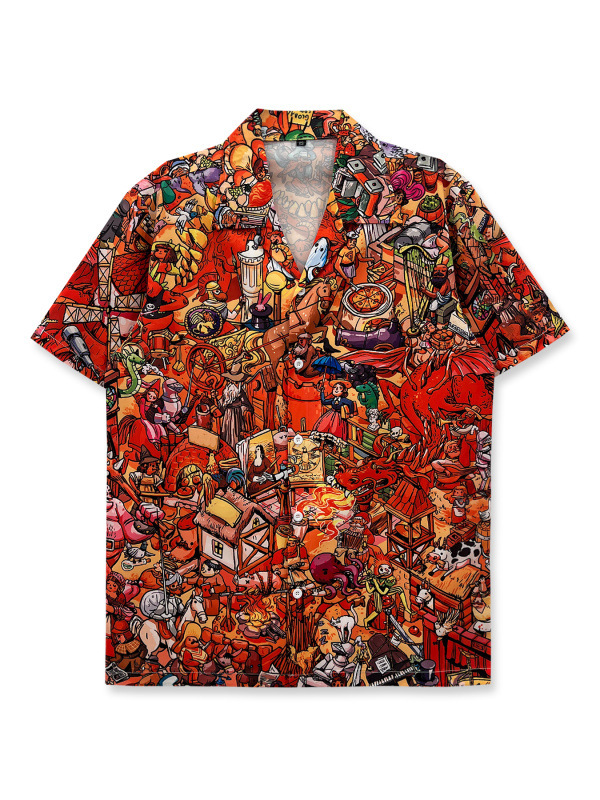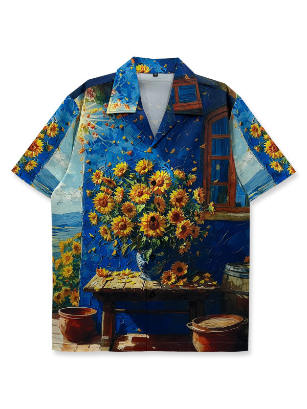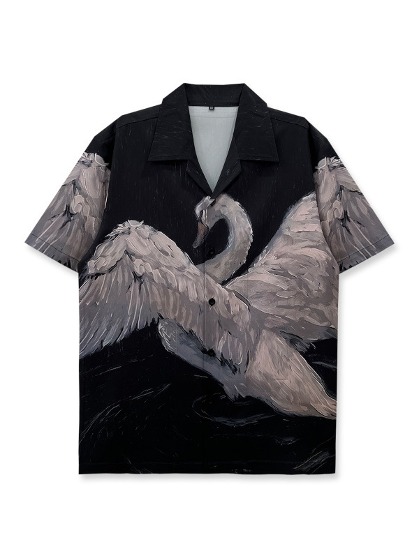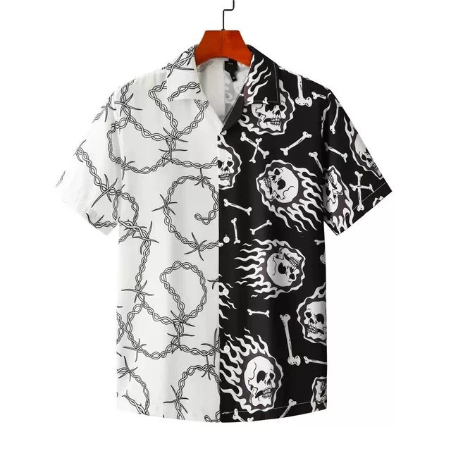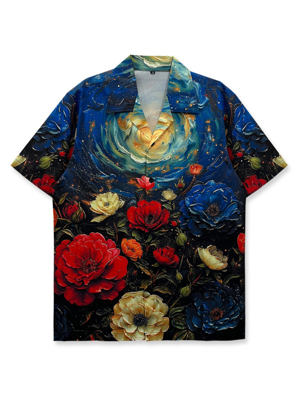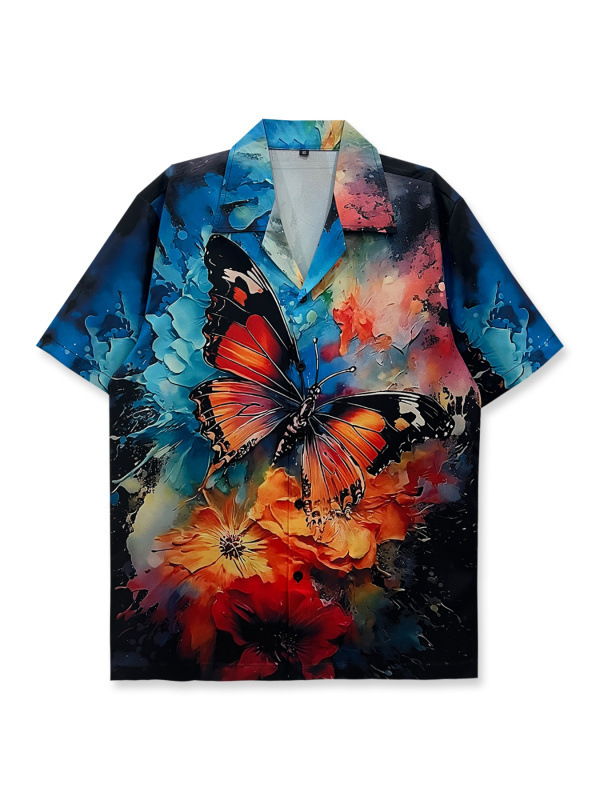 빈티지 레트로 디지털 프린트 셔츠 커플 반팔 얇은 루즈핏 캐주얼 비치 셔츠 남성용