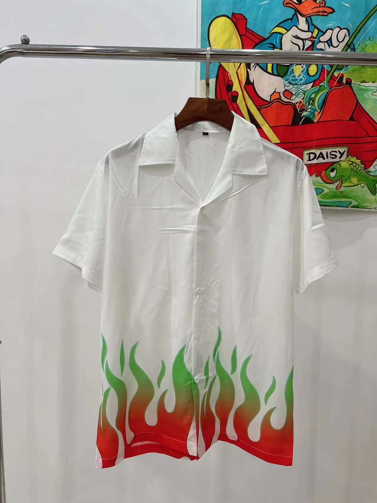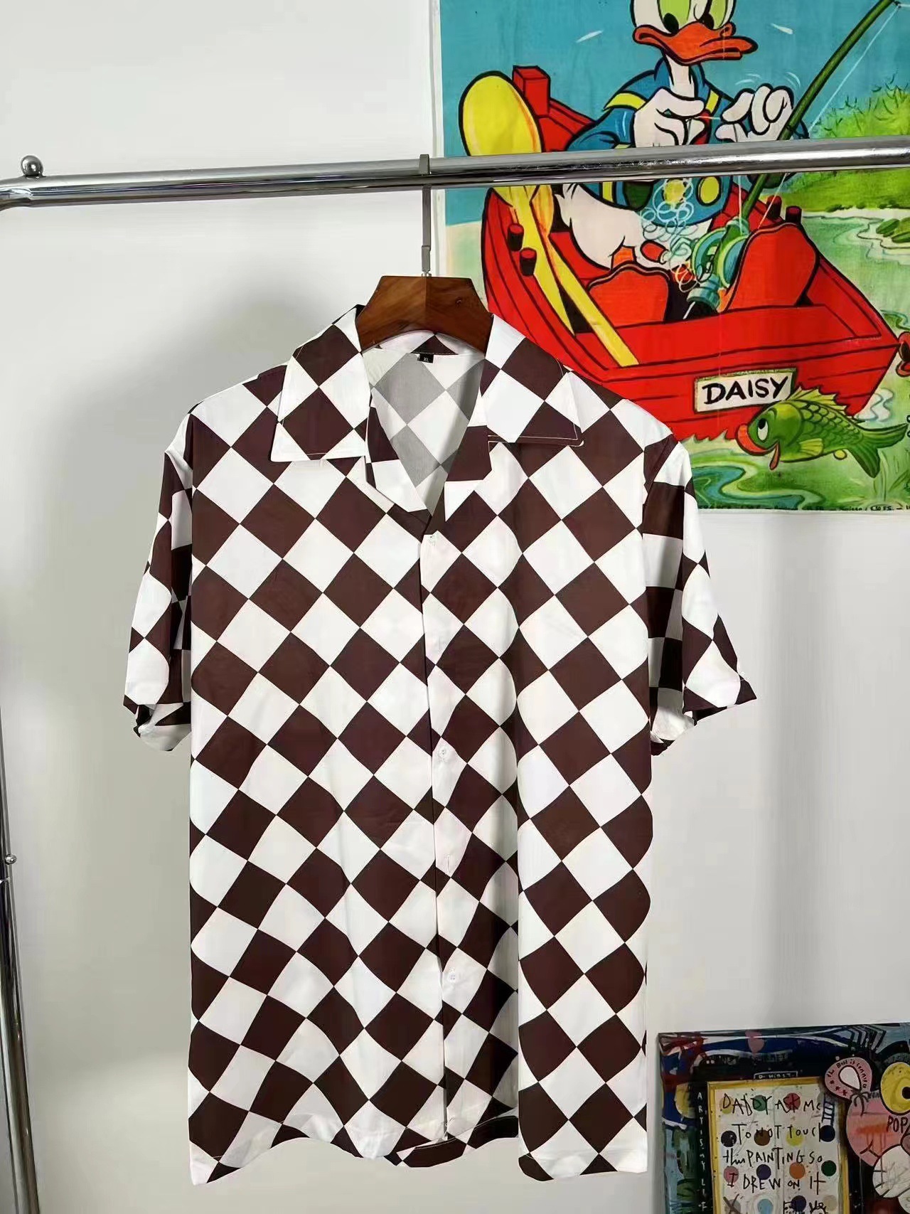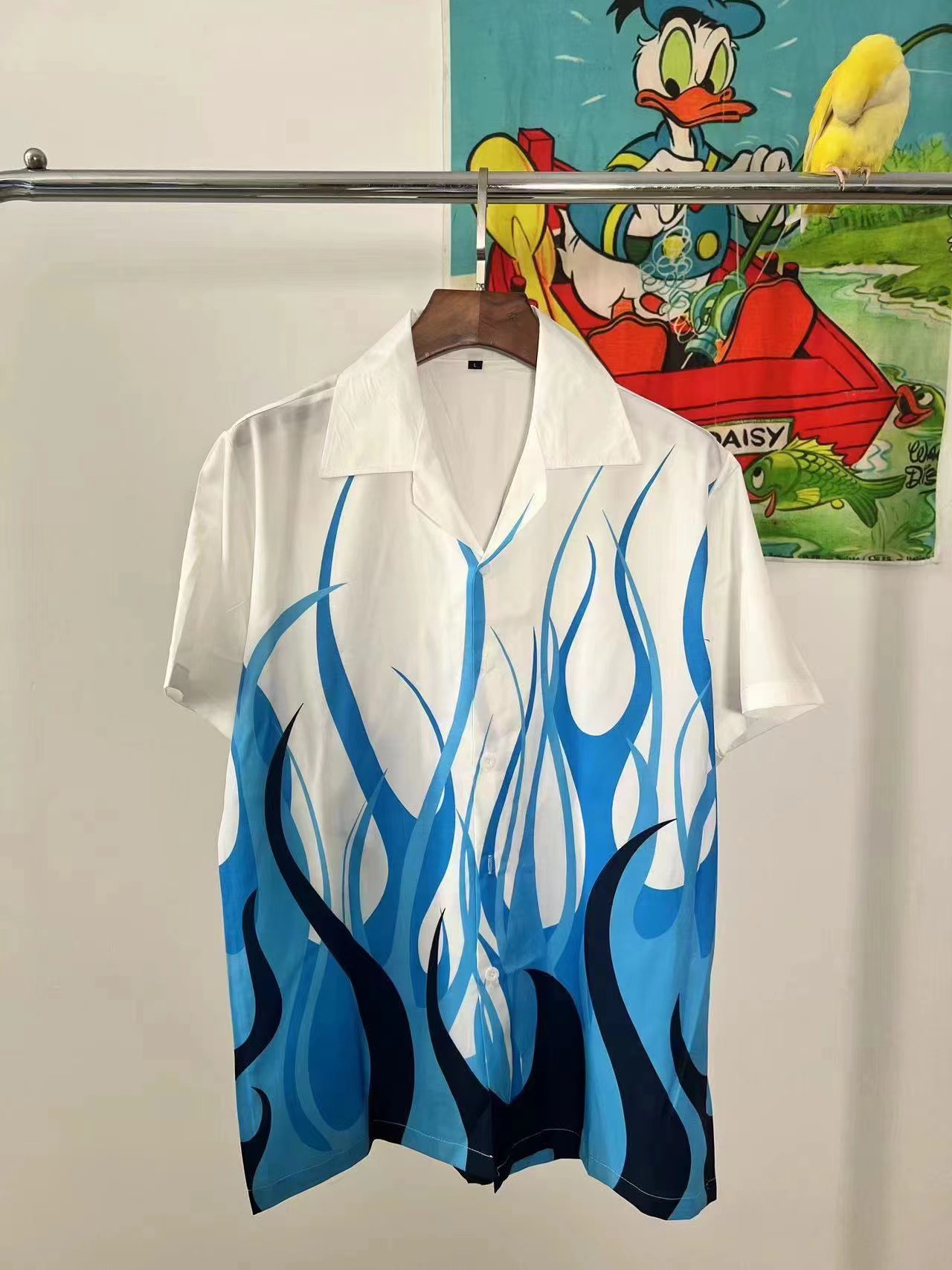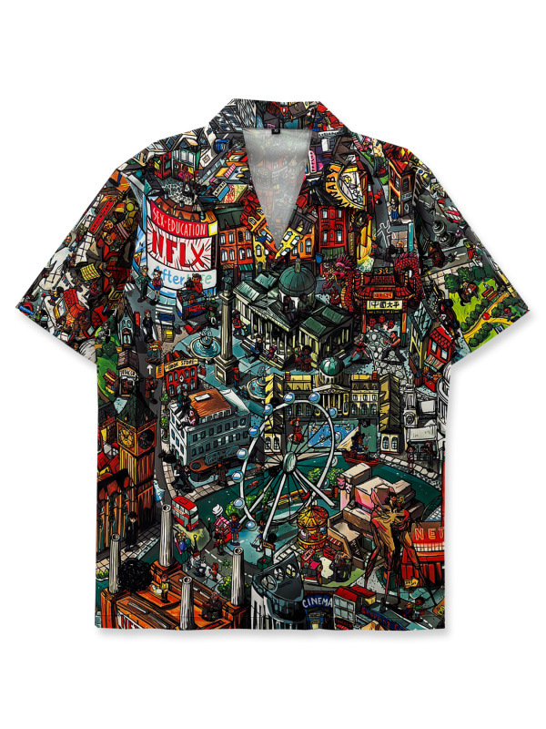 빈티지 레트로 디지털 프린트 셔츠 커플 반팔 얇은 루즈핏 캐주얼 비치 셔츠 남성용스토어 가기