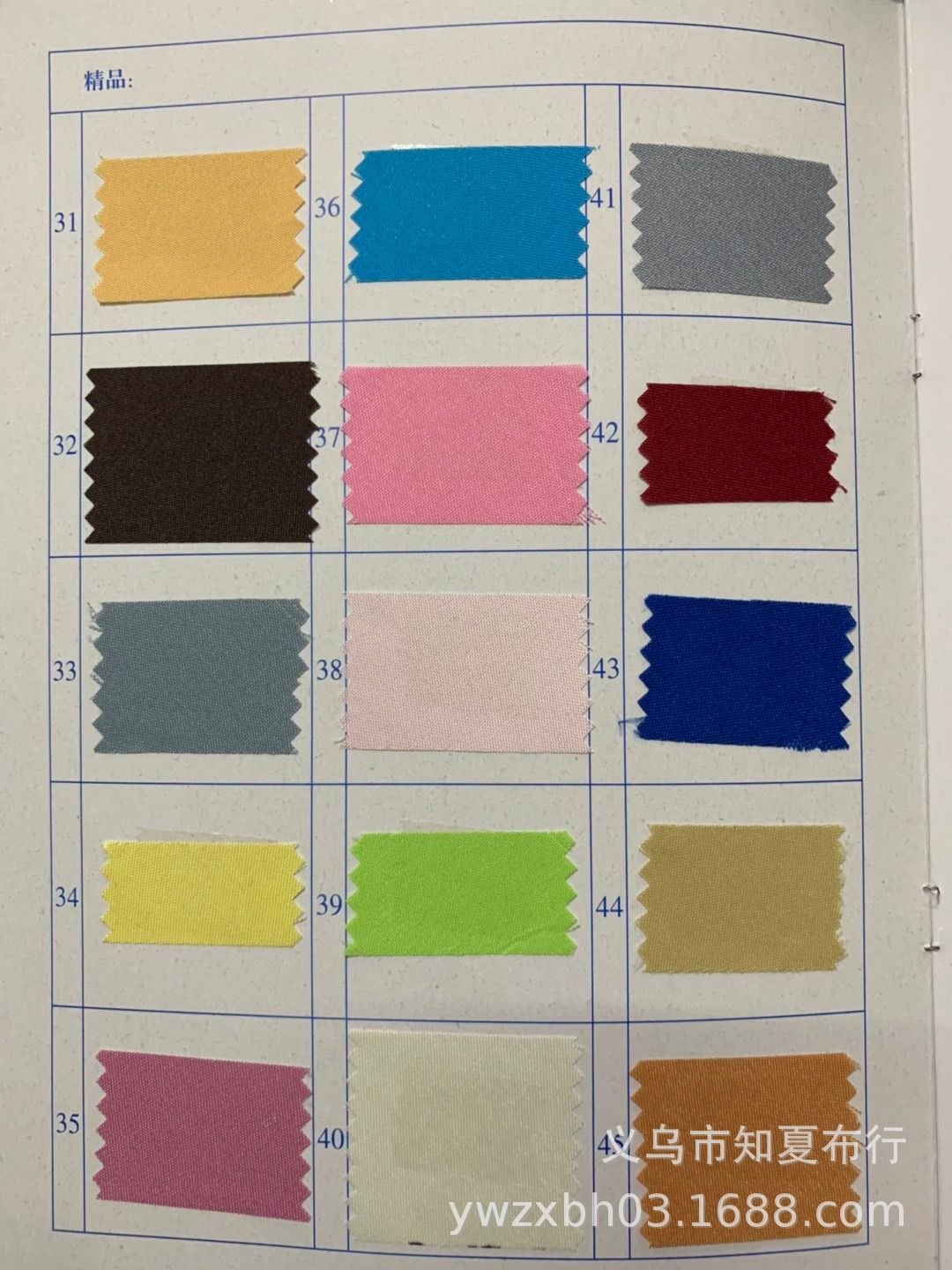 涤纶上浆色卡A8 展示(按色样选色 尺寸定切)
