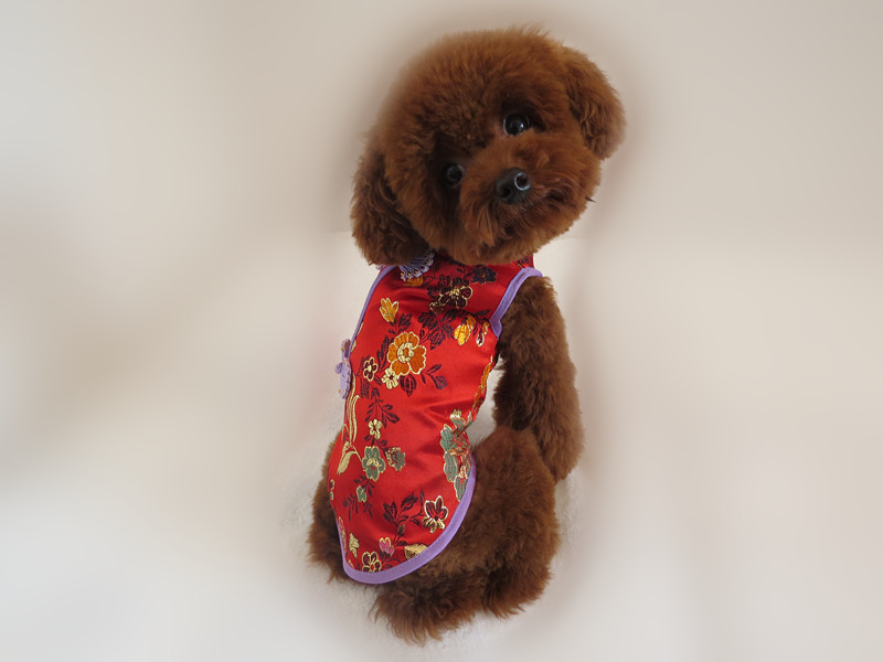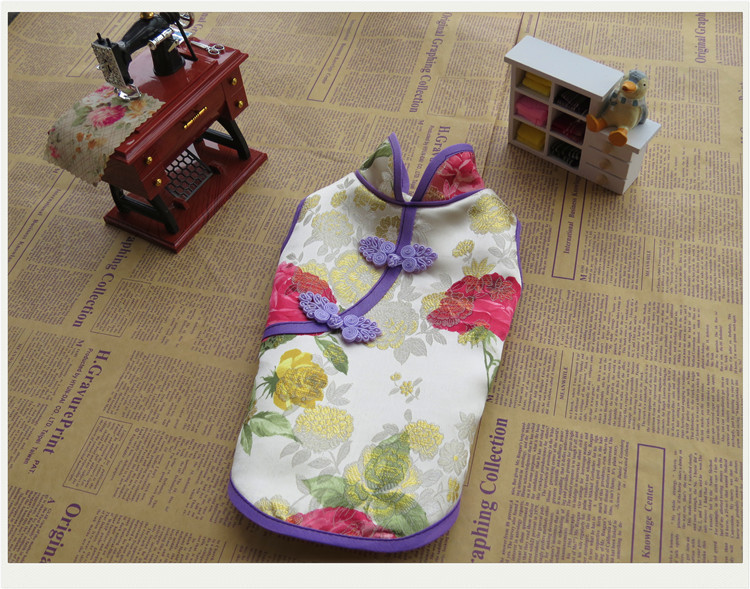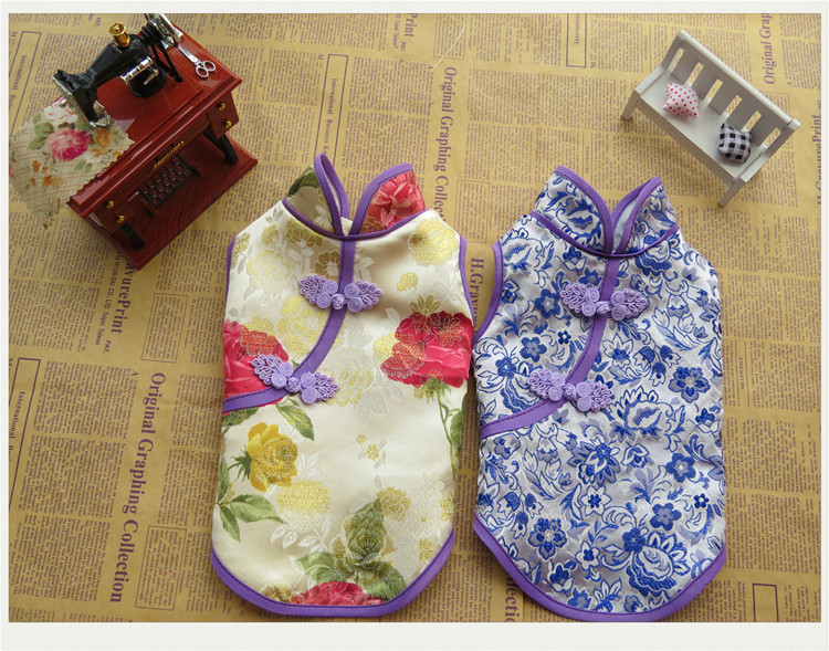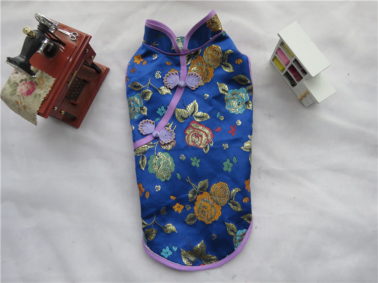 厂家原创新款宠物旗袍 面料采用织锦缎 内有里布轻薄透气 这个夏天能让你的宝贝瞬间变成公主范哦!