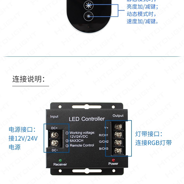 Xilai 라이트 RF 무선 터치 원격 제어 led 컨트롤러 컬러 RGB 라이트 스트립 모듈 패널 라이트 디머 18A