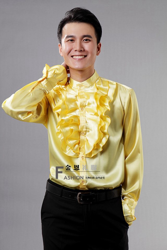 무대 긴 소매 성능 셔츠 합창 성능 의류 사진 스튜디오 사진 개인 초상화 퍼플 옐로우 화이트 남자의 원피스스토어 가기