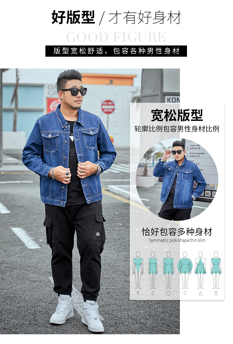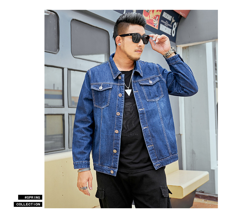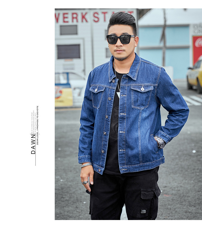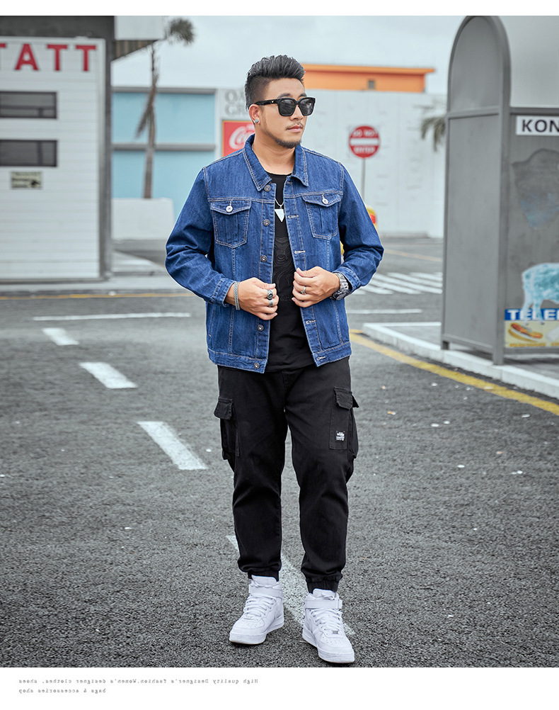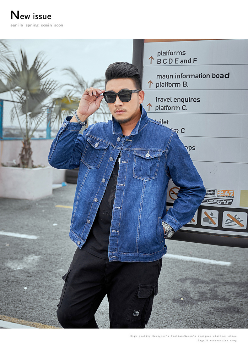 봄과 가을 플러스 사이즈 남자의 데님 재킷 초대형 데님 셔츠 유행 뚱뚱한 큰 데님 최고 뚱뚱한 재킷스토어 가기