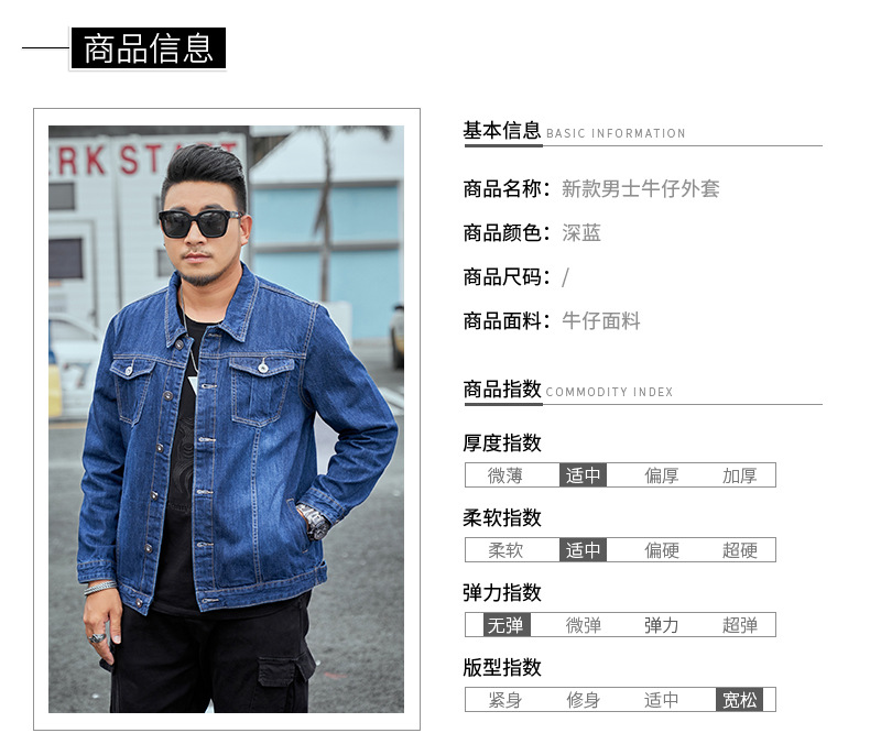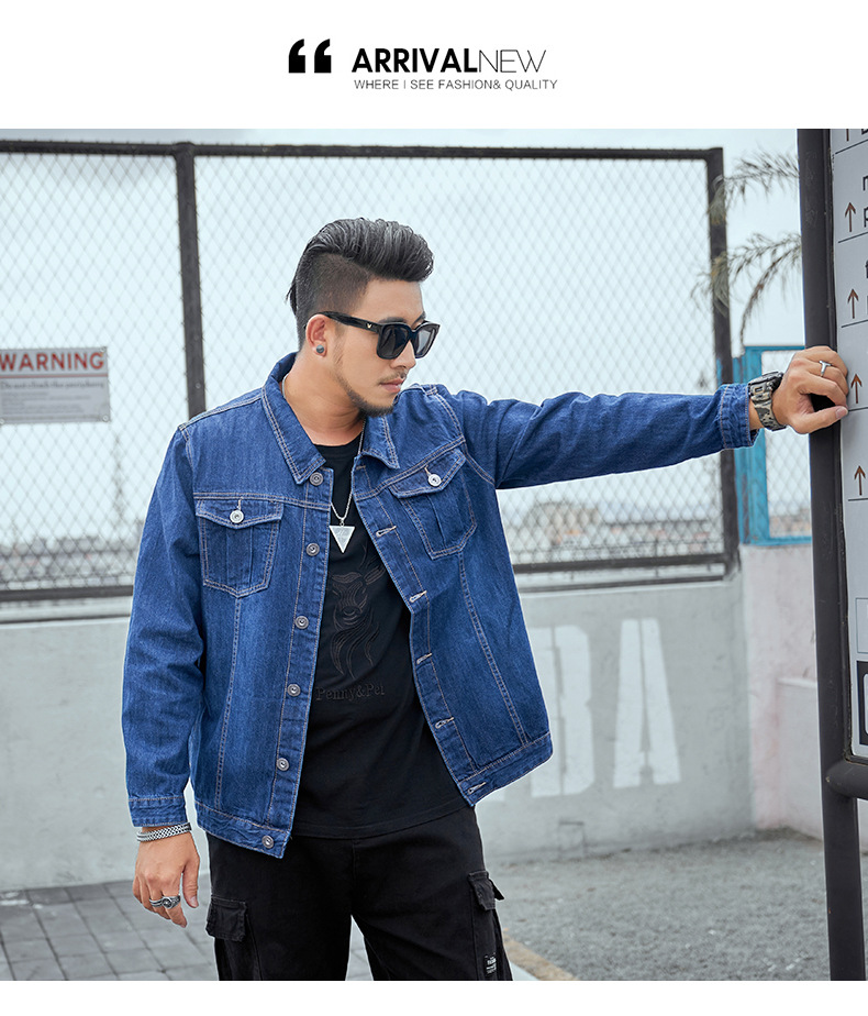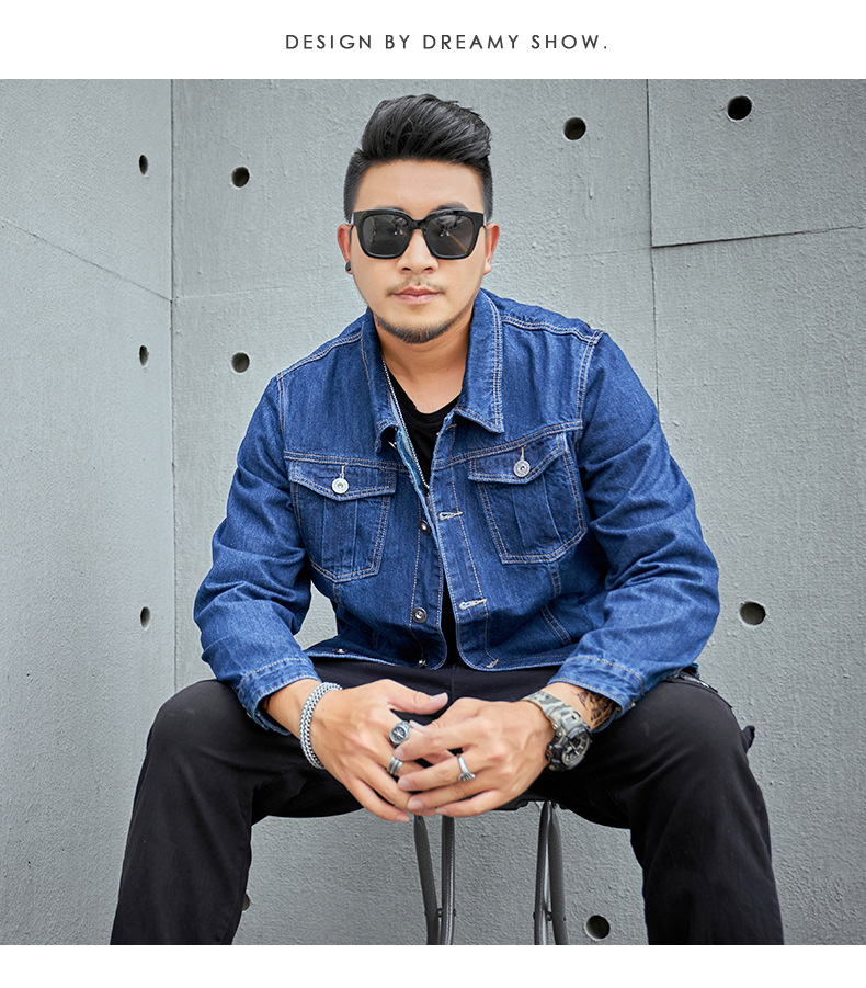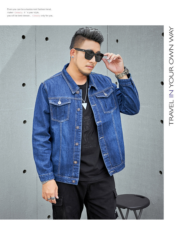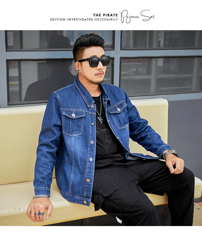 봄과 가을 플러스 사이즈 남자의 데님 재킷 초대형 데님 셔츠 유행 뚱뚱한 큰 데님 최고 뚱뚱한 재킷스토어 가기