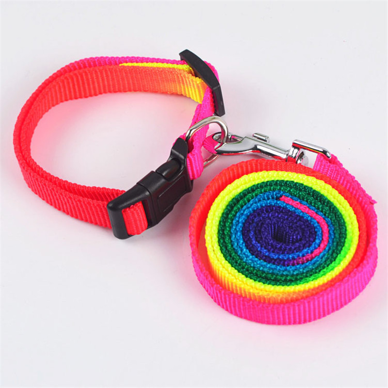 2.七彩扁绳牵引绳带项圈:绳宽1.0cm 长120cm 项圈宽1.0cm 可调节颈围23~37cm
