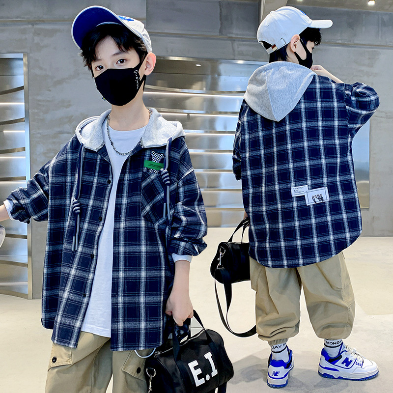 소년 코트 봄 스타일 2025 새로운 스타일 중대형 어린이 스타일 한국 스타일 후드 재킷 어린이 긴팔 셔츠 유행스토어 가기