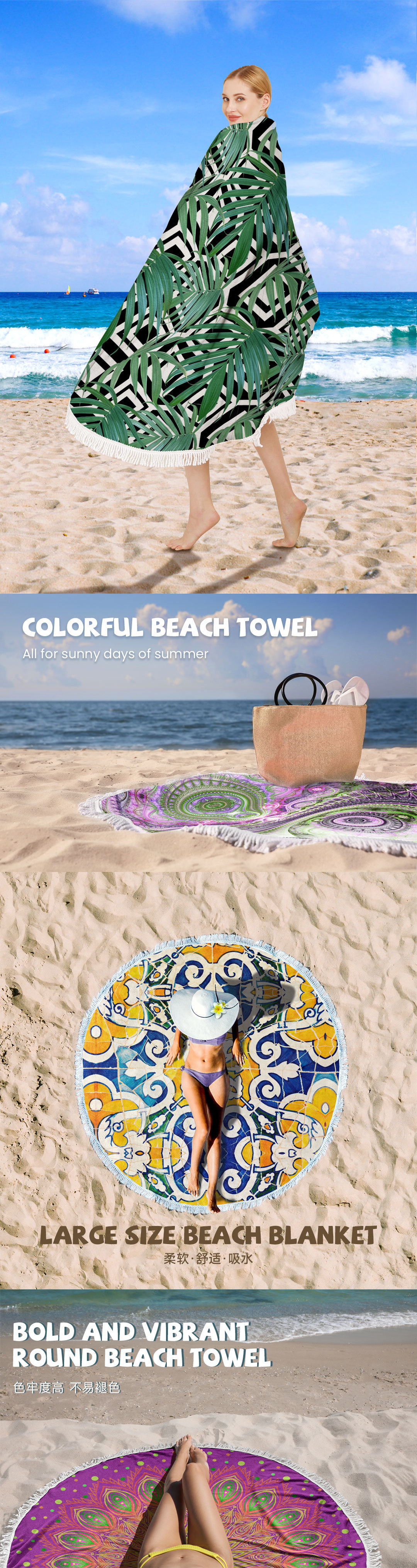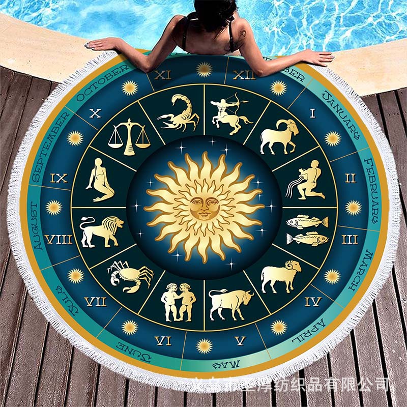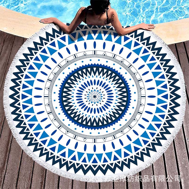 아마존 베스트셀러 초극세사 원형 태슬 비치 타월, 해변용 비치 매트, 수영용 비치 프린트 타월스토어 가기