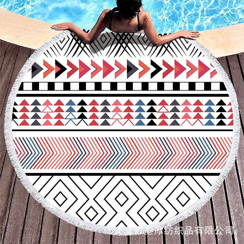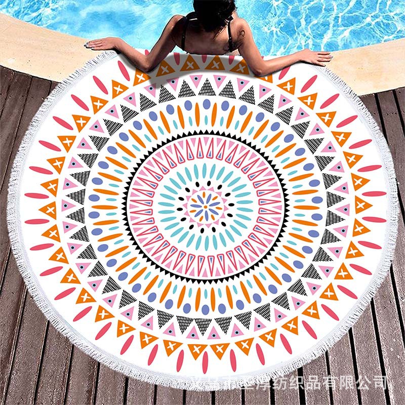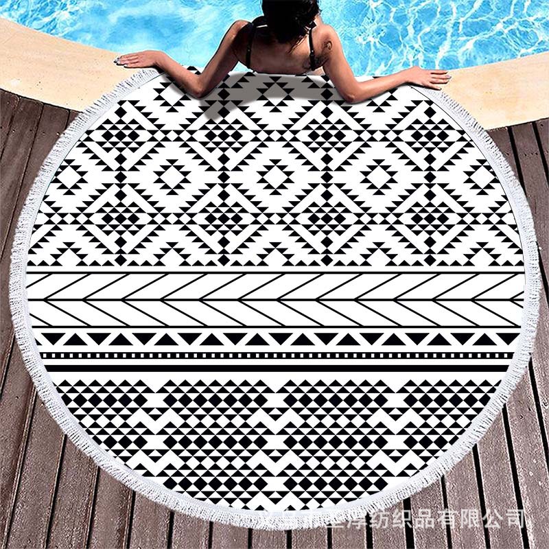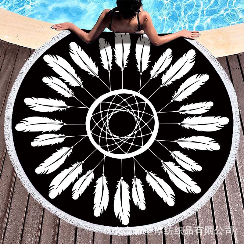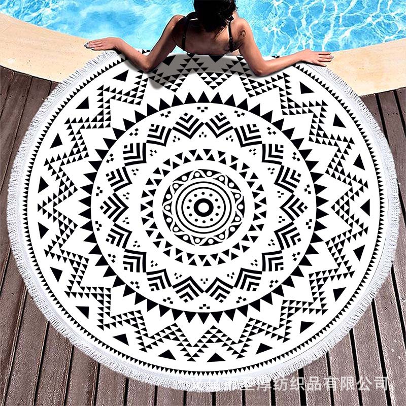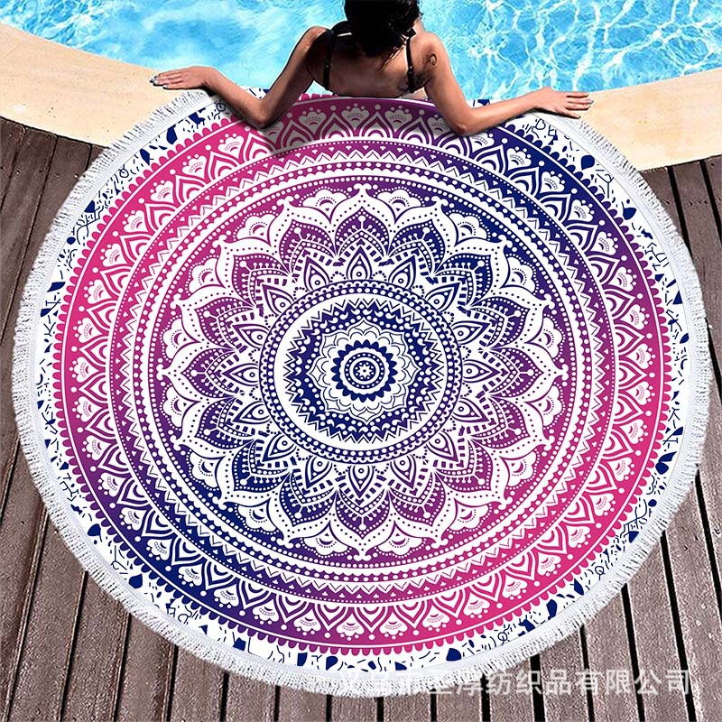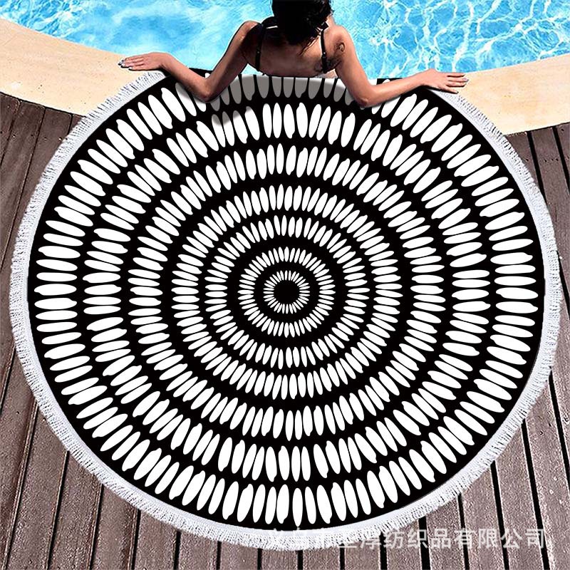 아마존 베스트셀러 초극세사 원형 태슬 비치 타월, 해변용 비치 매트, 수영용 비치 프린트 타월