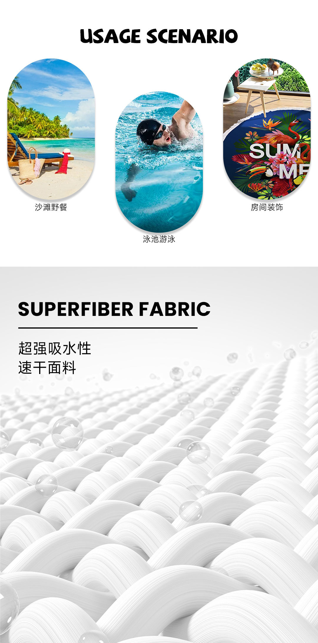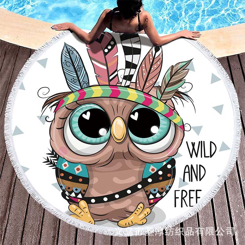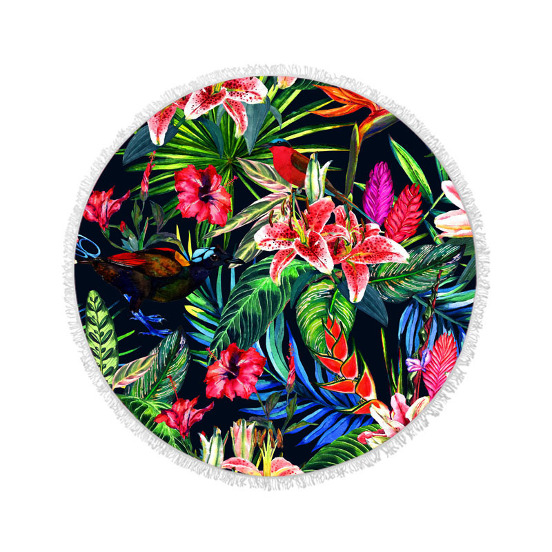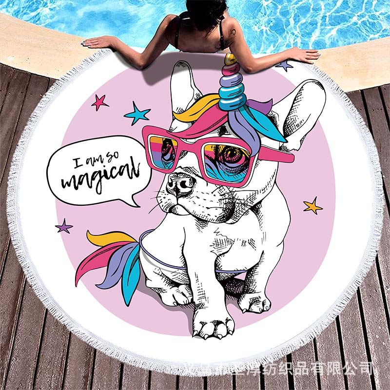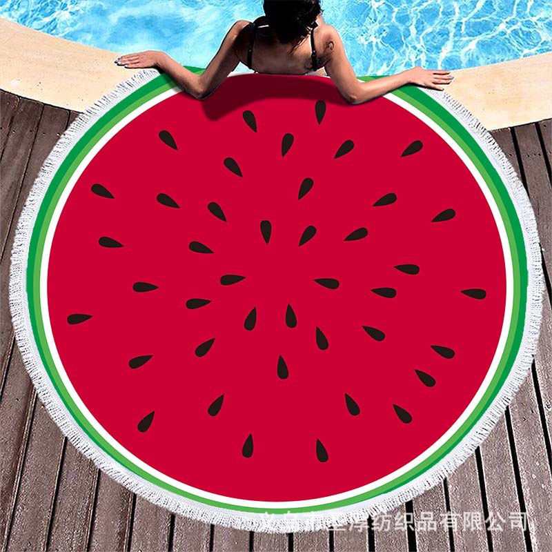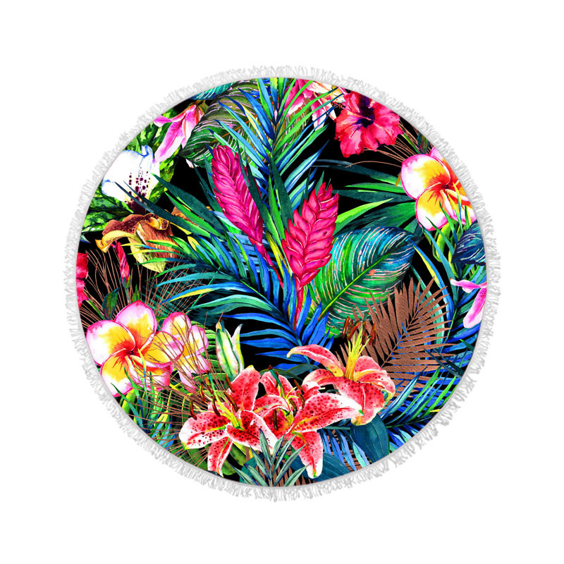 아마존 베스트셀러 초극세사 원형 태슬 비치 타월, 해변용 비치 매트, 수영용 비치 프린트 타월