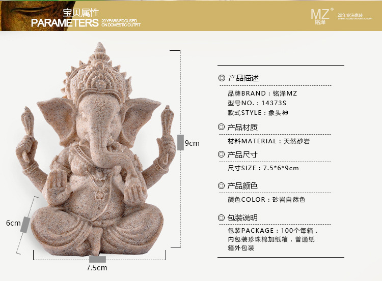 국경 간 폭발 밍제 사암 수지 공예 인도 코끼리 머리 신 가정 장식 장식 창조적 인 선물스토어 가기