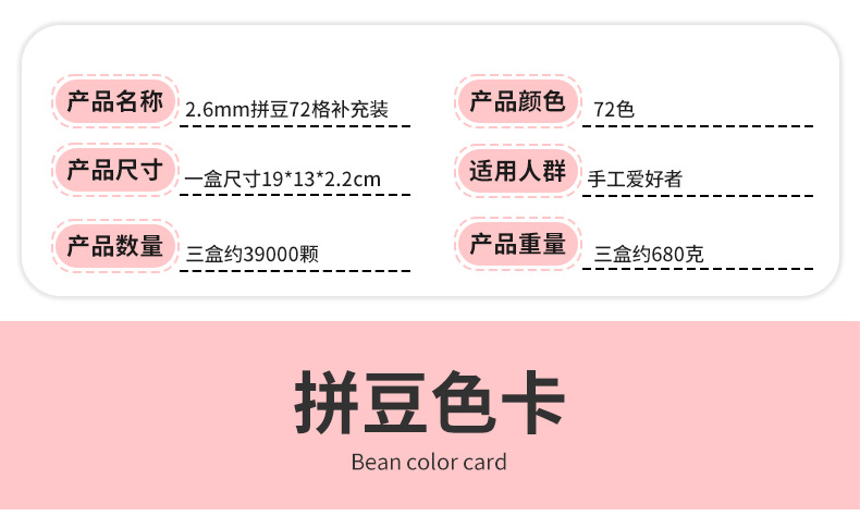 产品名称:2.6mm拼豆72色补充盒装(英文说明书)