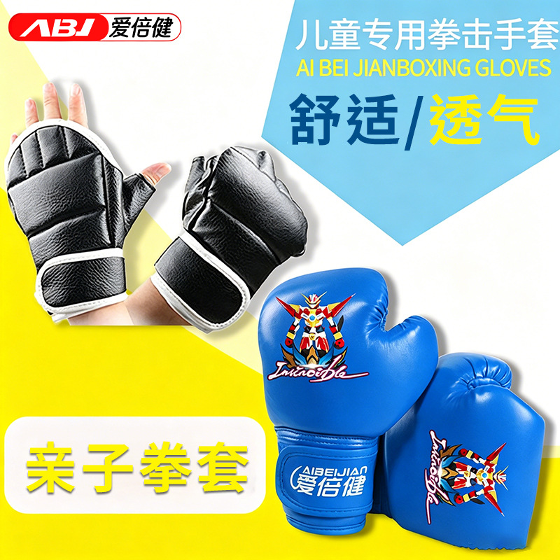 Aibeijian 권투 장갑 어린이 산다 파이팅 무에타이 소년 주니어 파이팅 반 손가락 샌드백 어린이 권투 장갑스토어 가기