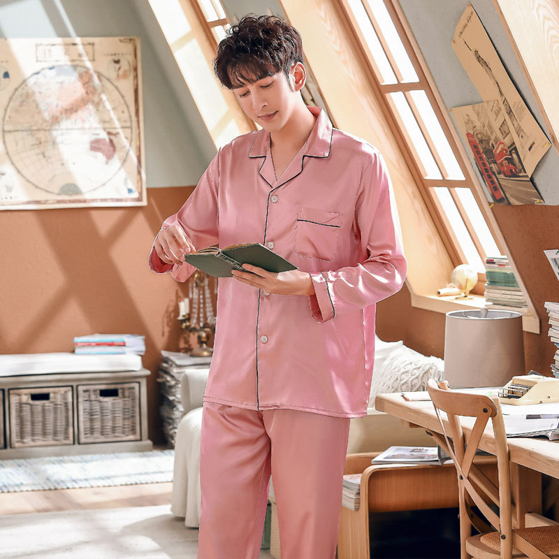 새로운 봄 여름 가을 남자와 여자의 커플의 모조 실크 잠옷 실크 웨딩 긴팔 반팔 가정 옷 세트스토어 가기