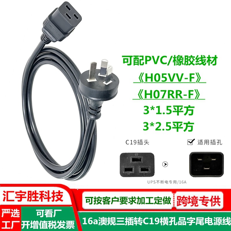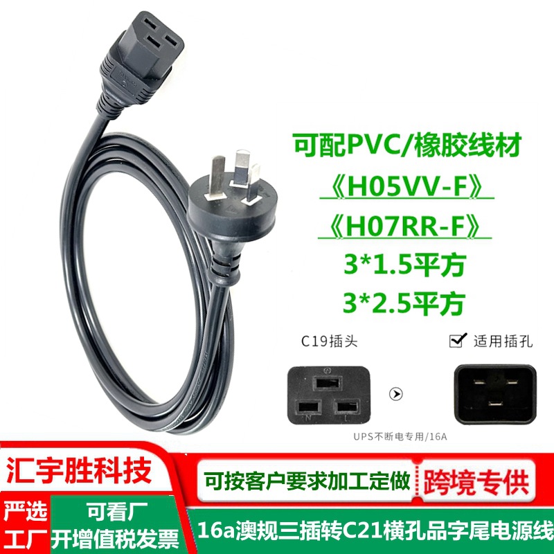 16A 제품 테일 서버 전원 코드 호주 게이지 SAA 호주 표준 3 플러그 크로스 홀 C19 제품 워드 플러그 코드