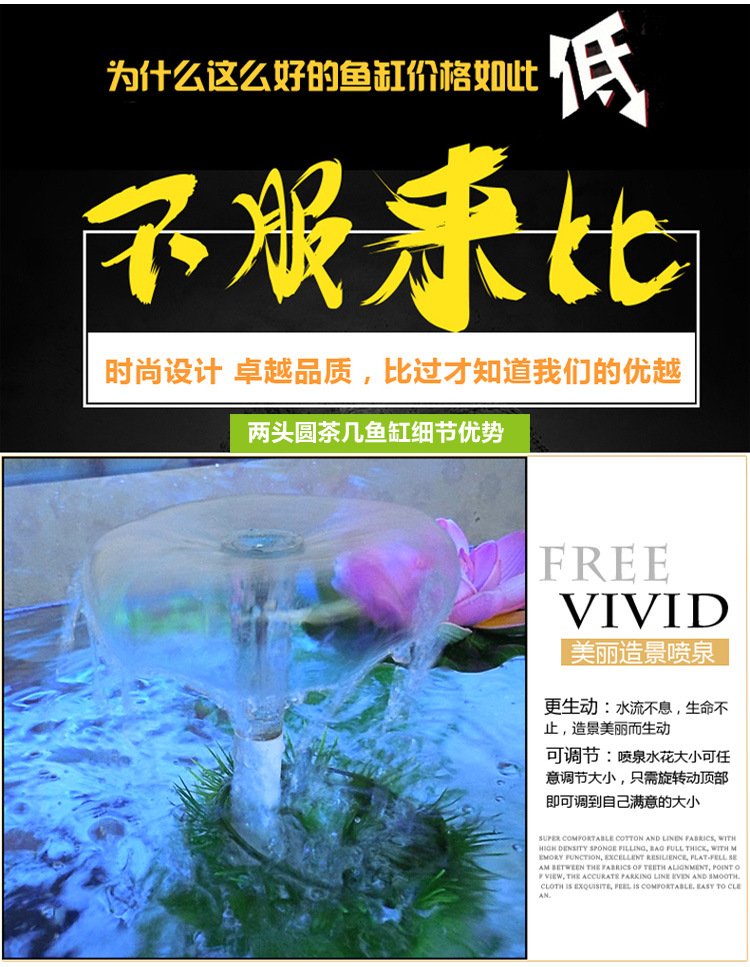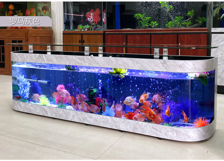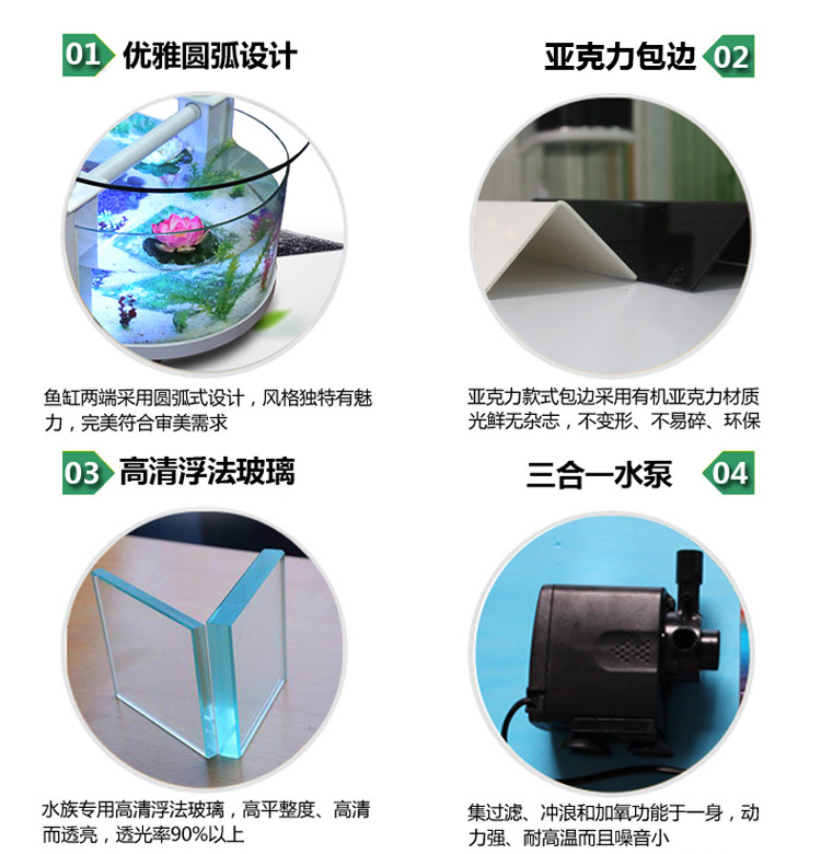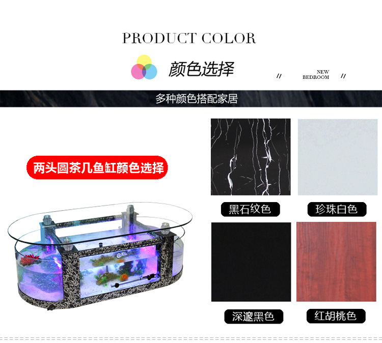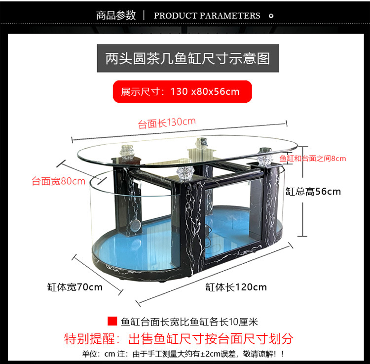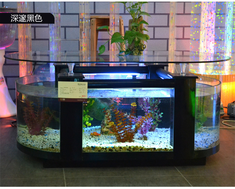 대형 생태 거실 커피 테이블 어항 수족관 라운드 유리 가정용 데스크탑 커피 테이블 어항 중형 거북이 탱크