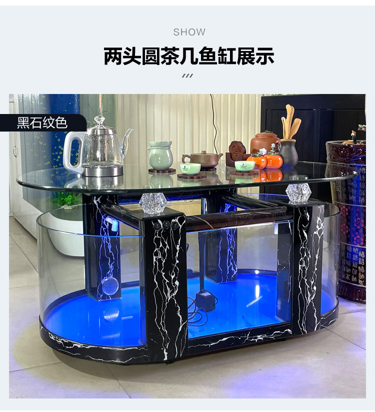 대형 생태 거실 커피 테이블 어항 수족관 라운드 유리 가정용 데스크탑 커피 테이블 어항 중형 거북이 탱크스토어 가기