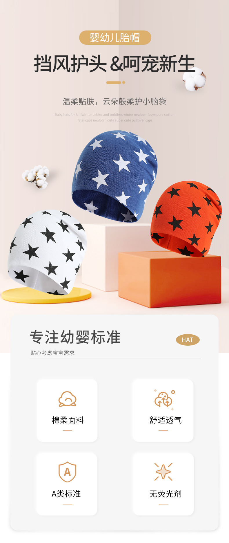 가을과 겨울 다채롭고 부드러운 아기 별 모양 풀오버 모자 니트 아기 모자 0-2세 유아용 풀오버 모자스토어 가기