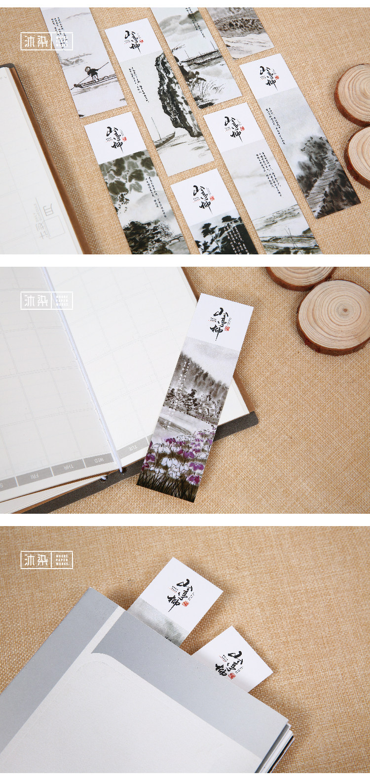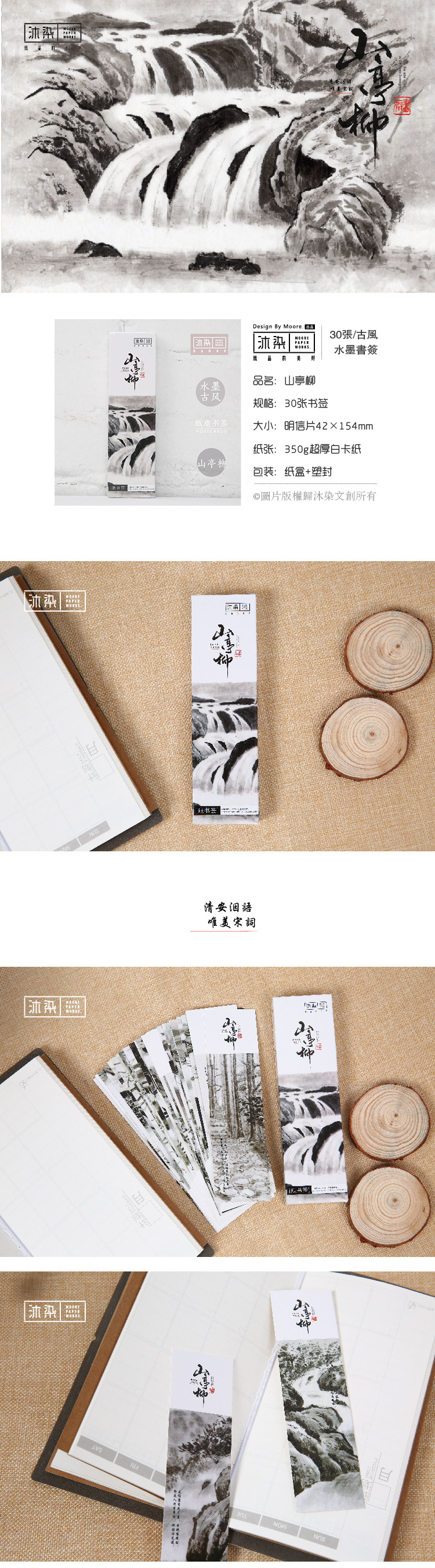 沐然书签山亭柳 四季的彩 书中自有喵 吃糖异形手绘书签古风糖果
