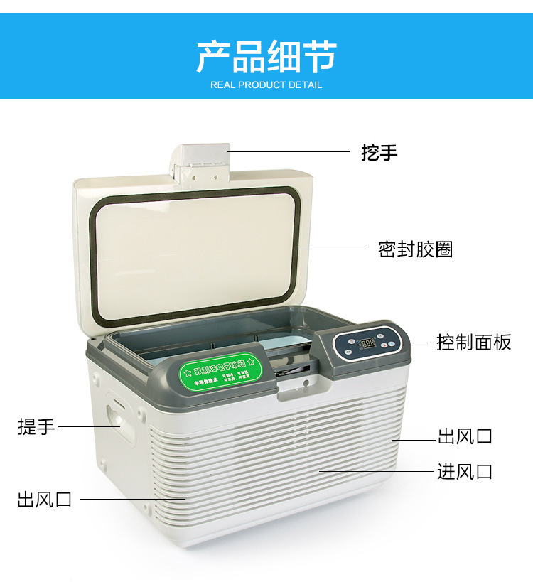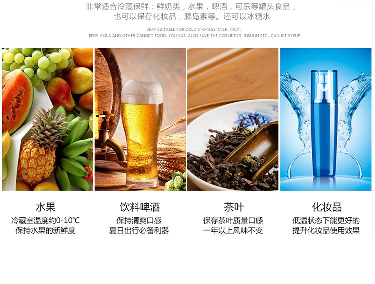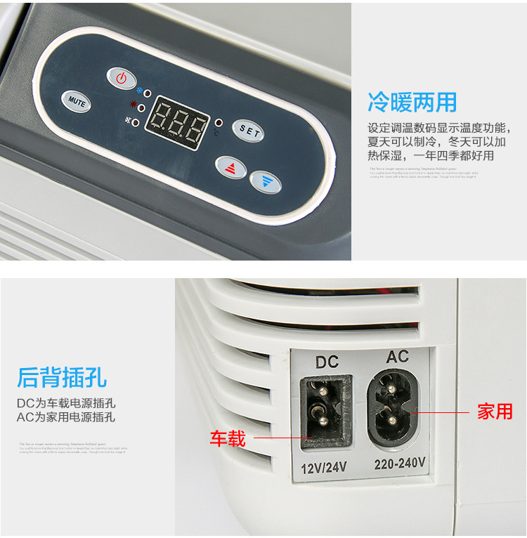 本产品12V\24V\220V双供电方式,进口制冷片,最低温度越-5度,制冷效果绝对的很好,既可在车上使用,也可在家里使用,让您随时随地都能享受。