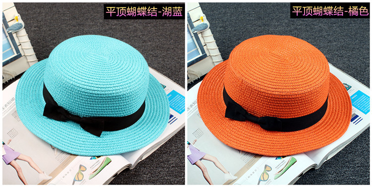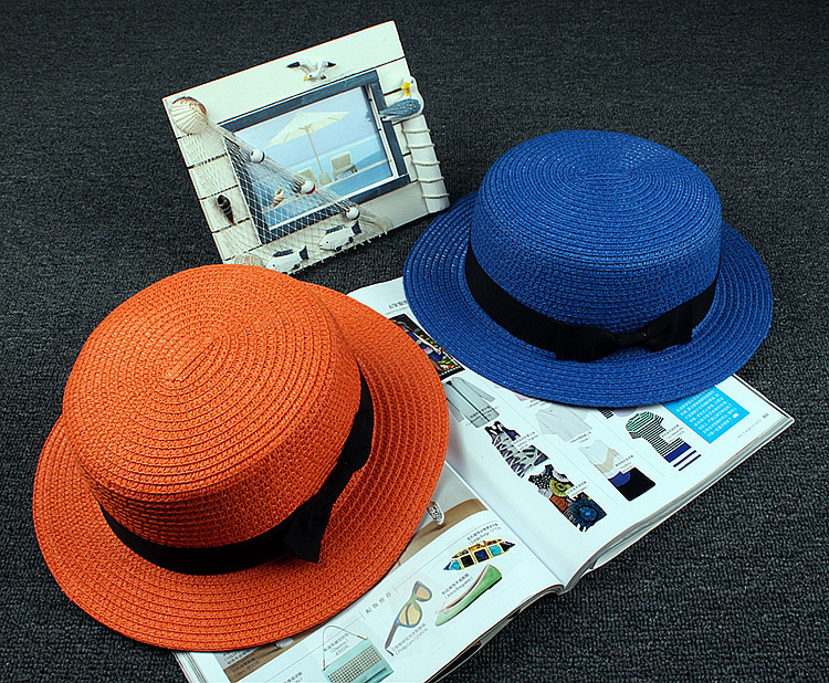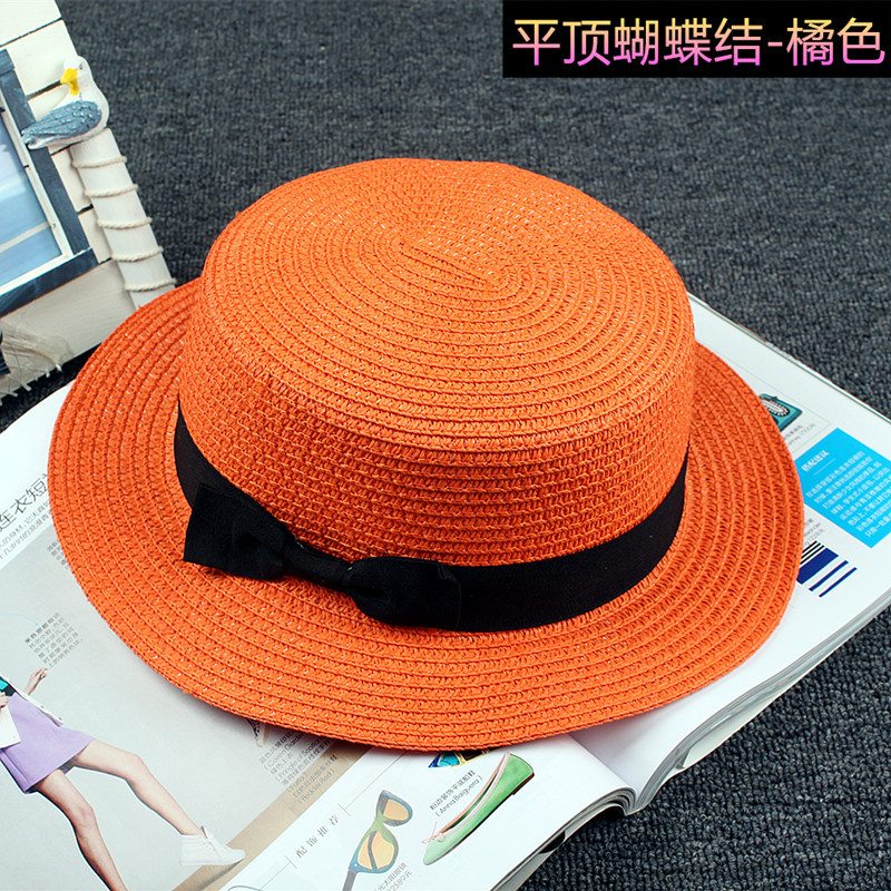 • 플랫 탑 보우 밀짚 모자 오렌지