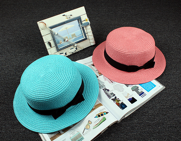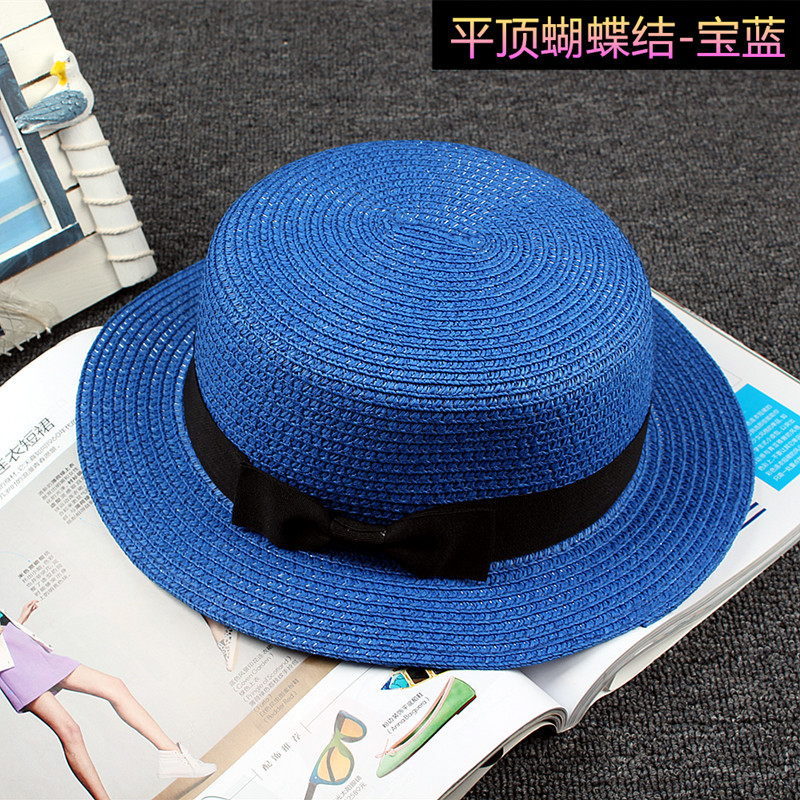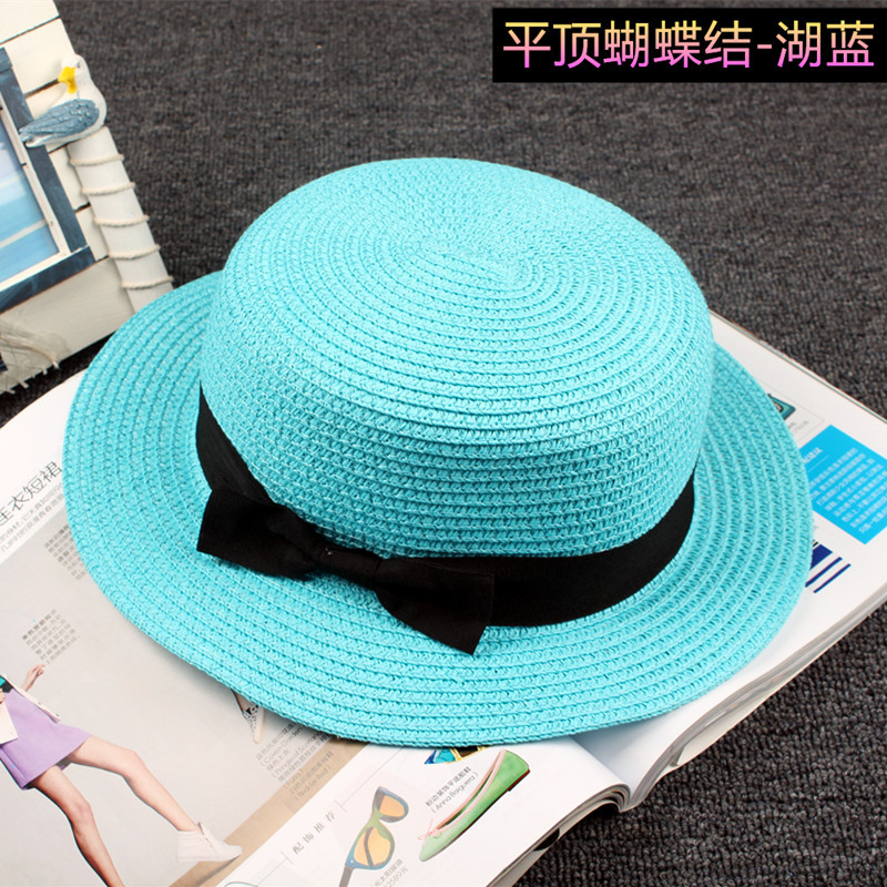 • 플랫 탑 보우 밀짚 모자 레이크 블루