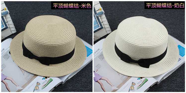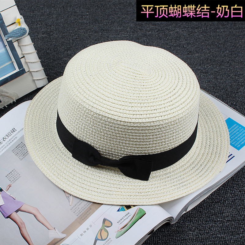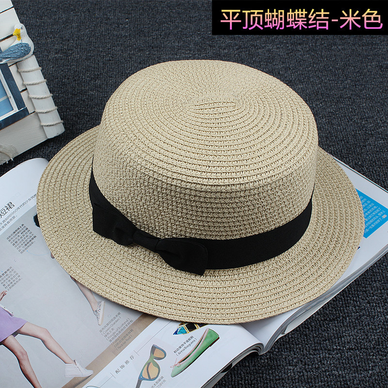 한국식 밀짚 모자 차양 모자 트렌디 한 여성용 여름 후추 나비 밀짚 플랫 탑 모자 자외선 차단제 비치 모자스토어 가기