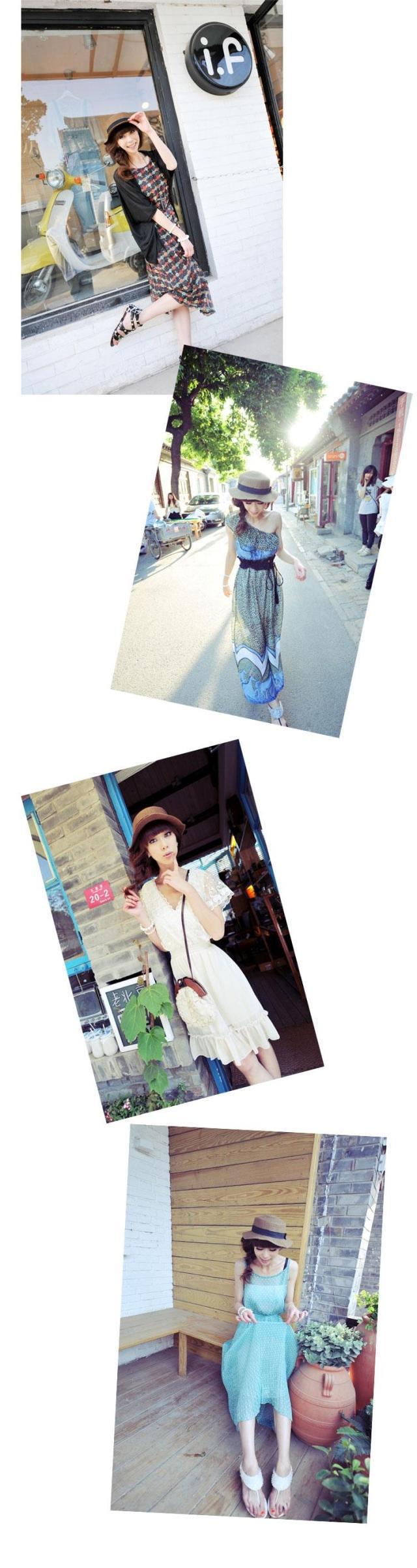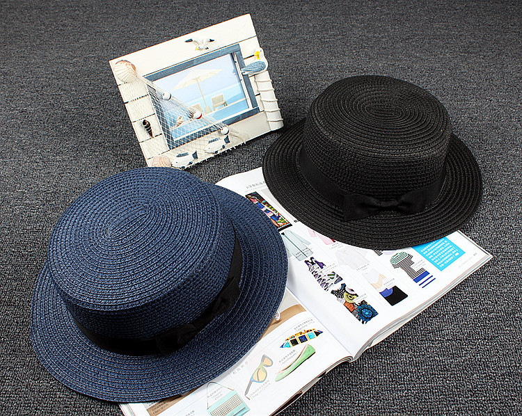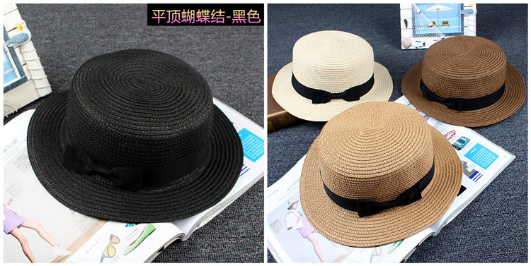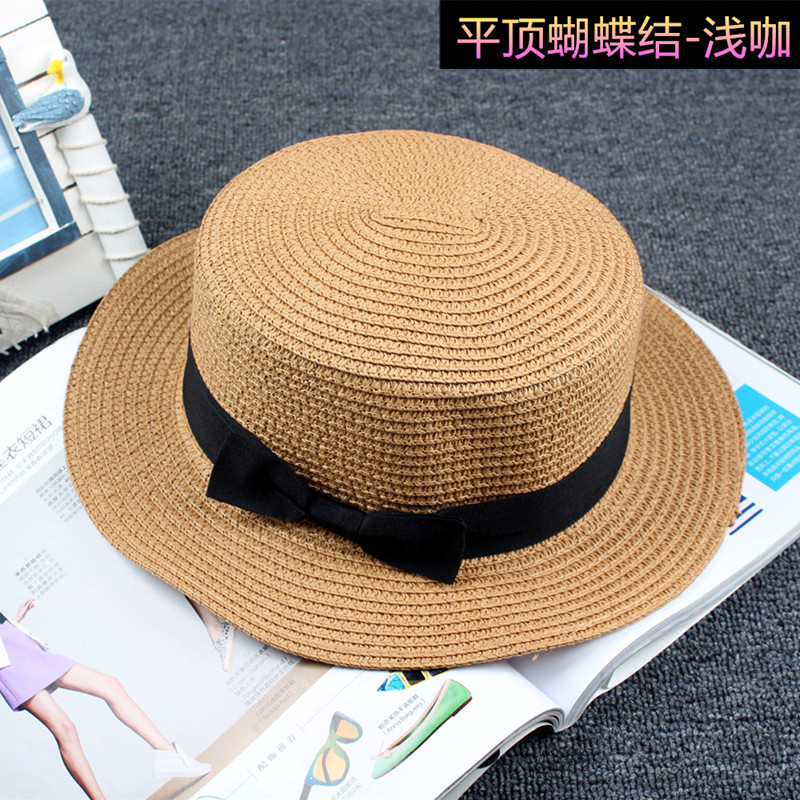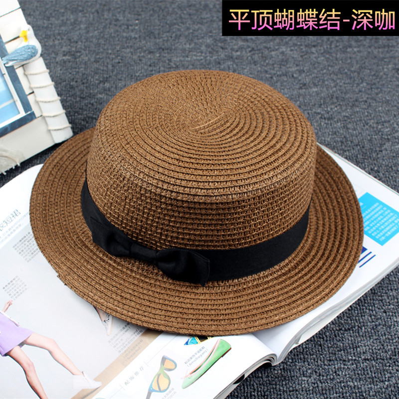 • 플랫 탑 보우 밀짚 모자 얕은 커피