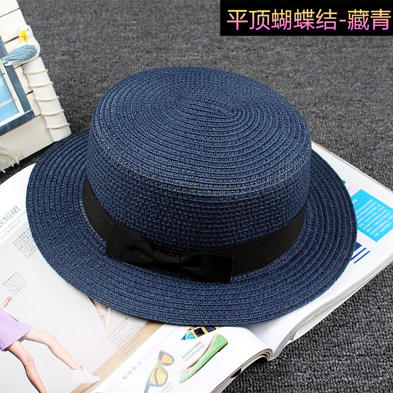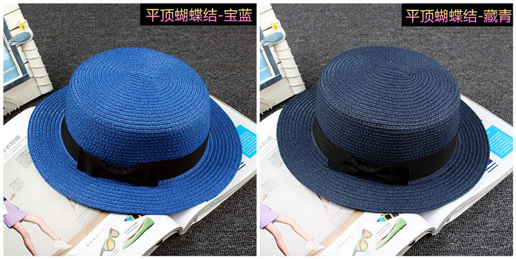 • 플랫 나비 매듭 밀짚 모자 사파이어 블루