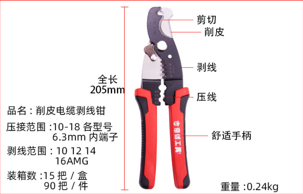 • 9 인치 필링 압착 와이어 스트리퍼 0.24kg/핸들 15 PCs/box 90 PCs/piece