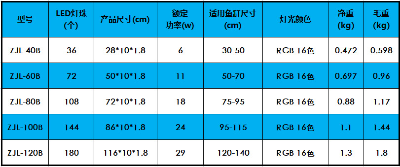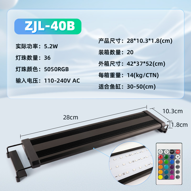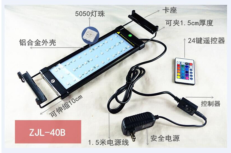 • ZJL-40B 수생식물 브래킷 램프(30-50cm 수조에 적합한 램프 구슬 36개) RGB 모델-5.2W