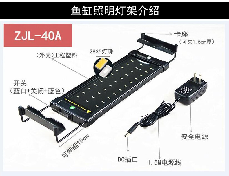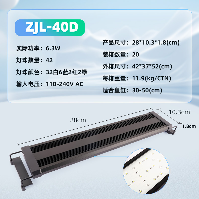 • ZJL-40D 수생식물 브래킷 램프(흰색 32개, 파란색 6개, 빨간색 2개, 녹색 램프 구슬 2개, 30-50cm 수조에 적합) 색상 모델-6.3W