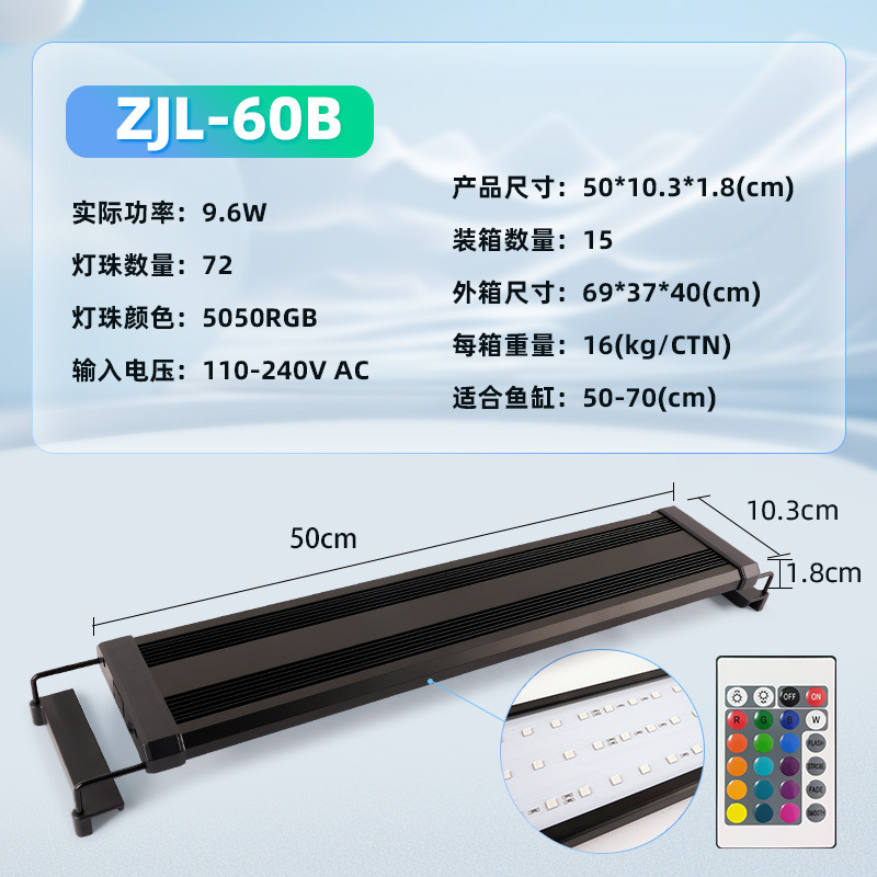 • ZJL-60B 수생식물 브래킷 램프(50-70cm 수조에 적합한 72개의 램프 구슬) RGB 모델-9.6W