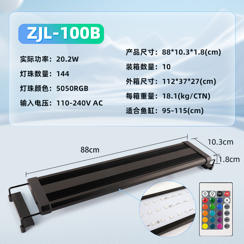 • ZJL-100B 수생 식물 브래킷 램프(95-115cm 수조에 적합한 144개의 램프 구슬) RGB 모델-20.2W