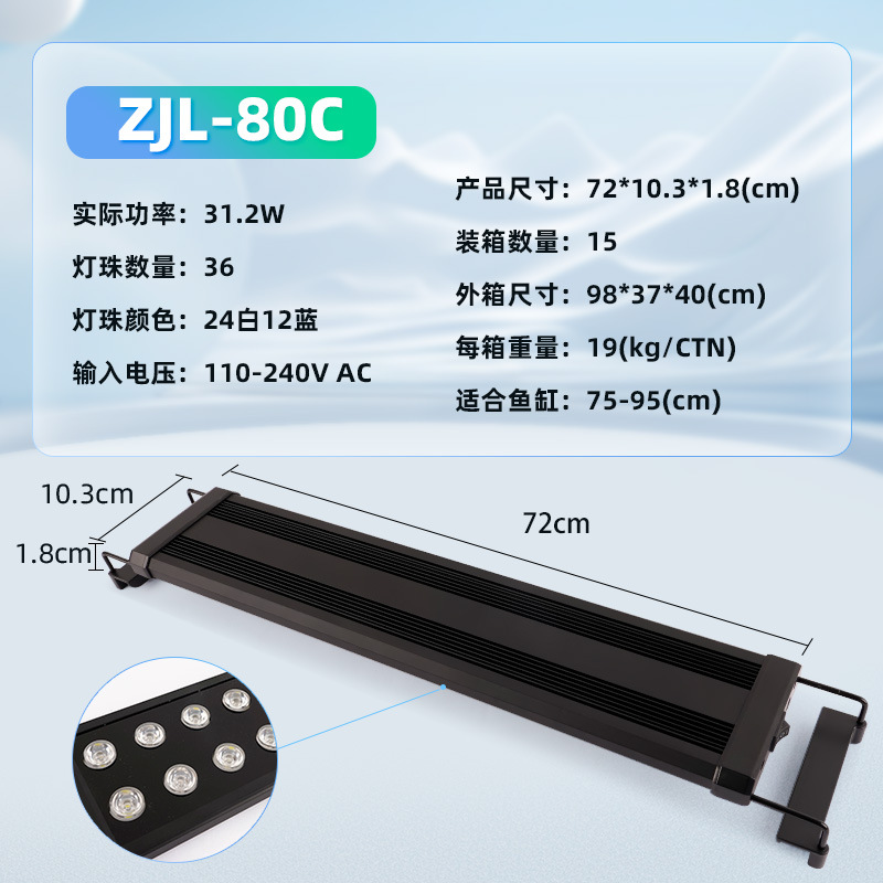 • ZJL-80C 수생식물 브래킷 램프(흰색 24개, 파란색 12개, 램프 구슬 36개, 75-95cm 수조에 적합) 고휘도 파란색과 흰색 모델-31.2W