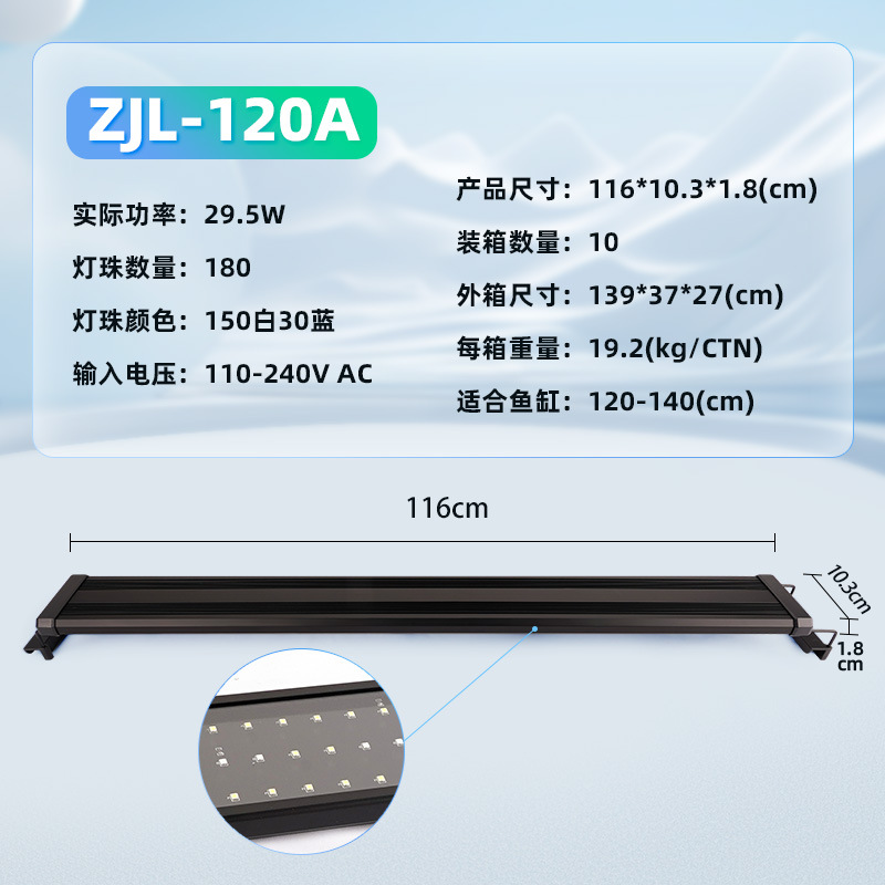 • ZJL-120A 수생 식물 브래킷 램프(흰색 150개, 파란색 램프 구슬 30개, 120-140cm 수조에 적합) 파란색과 흰색 모델-29.5W