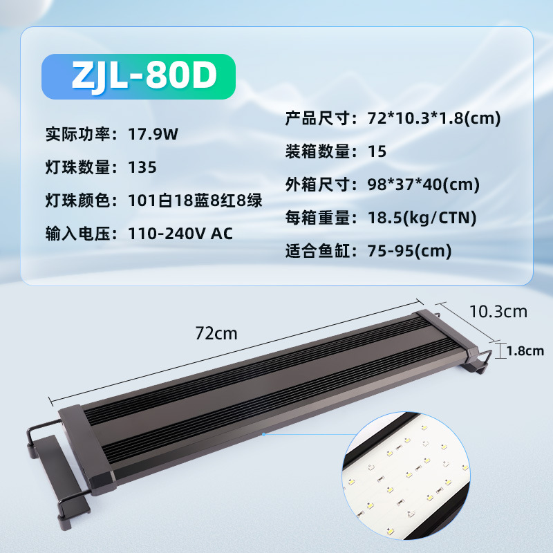 • ZJL-80D 수생 식물 브래킷 램프(흰색 101개, 파란색 18개, 빨간색 8개, 녹색 램프 구슬 8개, 75-95cm 수조에 적합) 색상 모델-17.9W