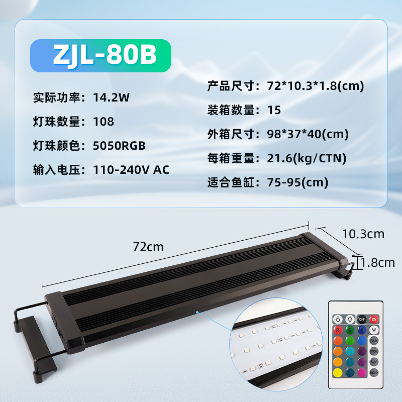 • ZJL-80B 수생식물 브래킷 램프(75-95cm 수조에 적합한 108개의 램프 구슬) RGB 모델-14.2W
