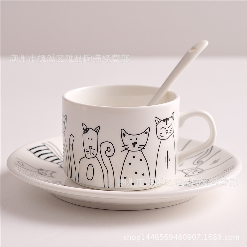 Zakka 창조적 인 아침 식사 접시 꽃 고양이 접시 깊은 접시 얕은 접시 바이 노럴 수프 그릇 커피 컵 접시 머그 세라믹