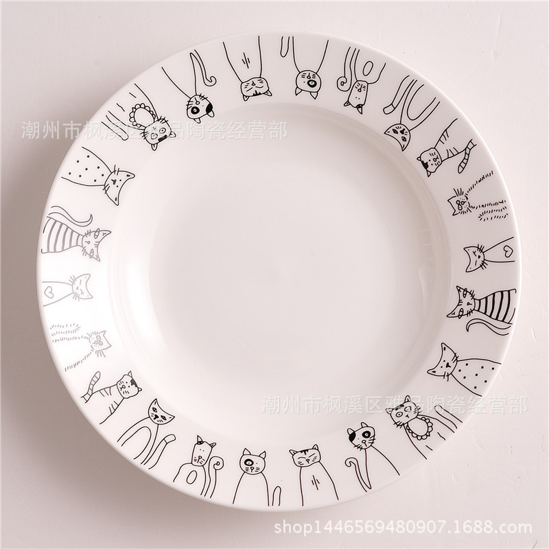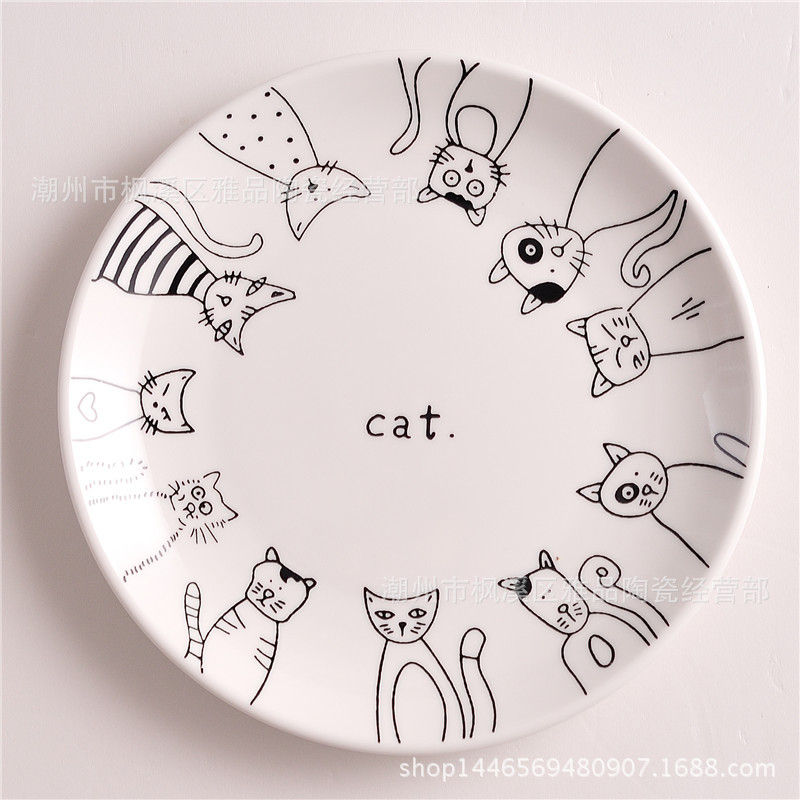 Zakka 창조적 인 아침 식사 접시 꽃 고양이 접시 깊은 접시 얕은 접시 바이 노럴 수프 그릇 커피 컵 접시 머그 세라믹스토어 가기