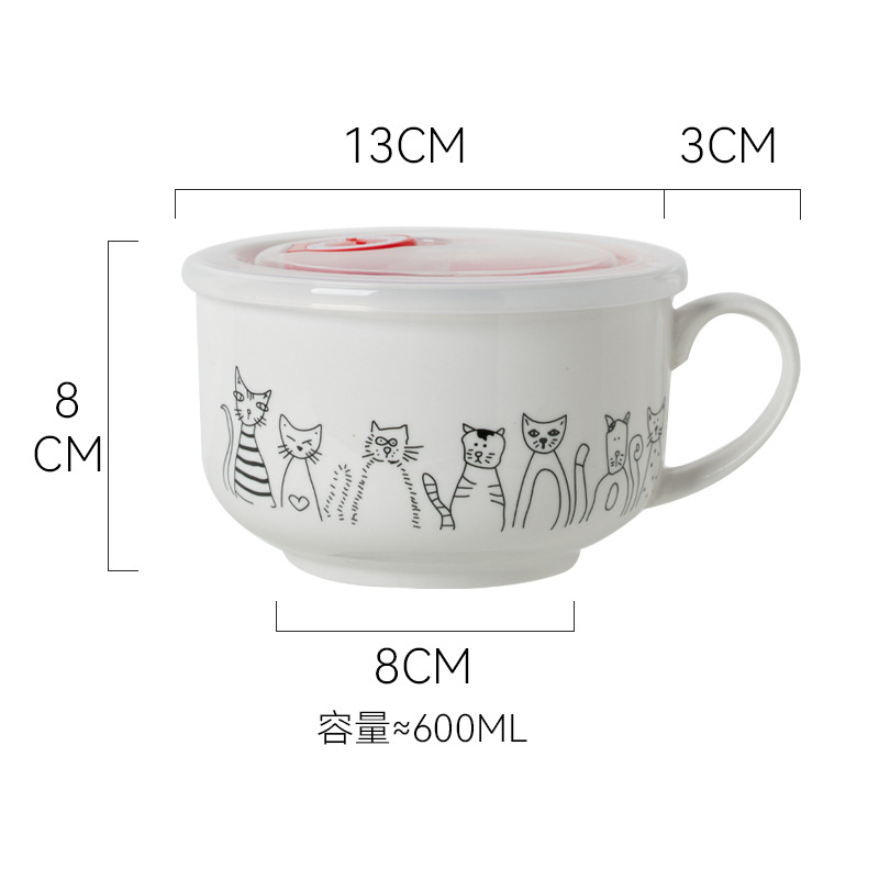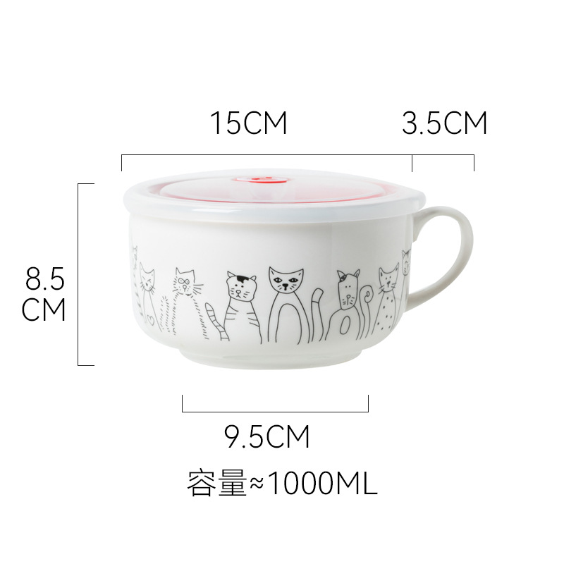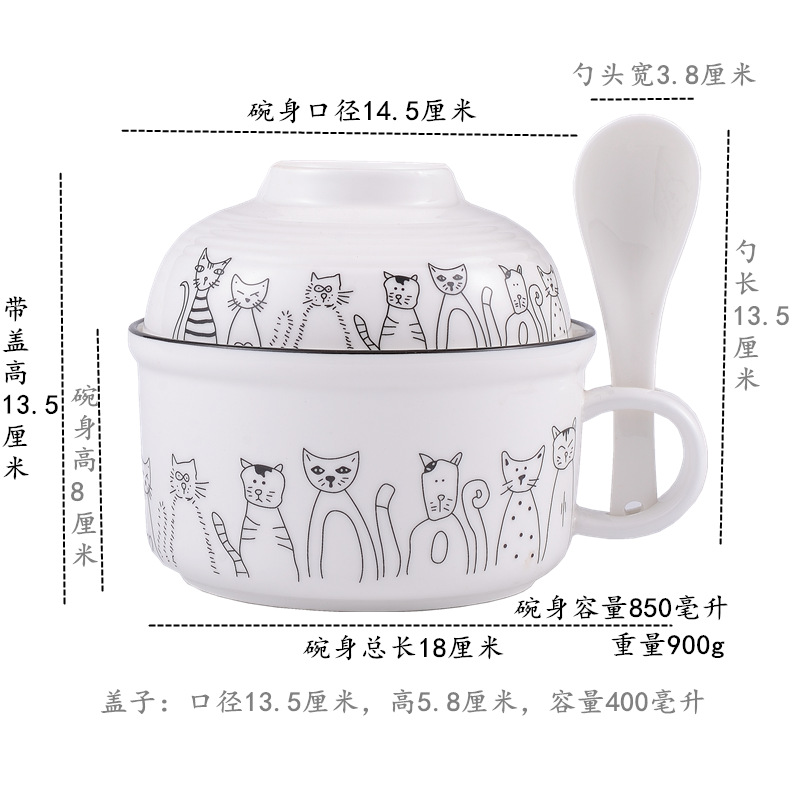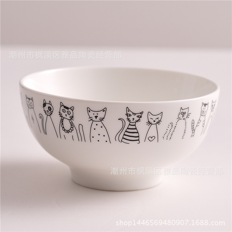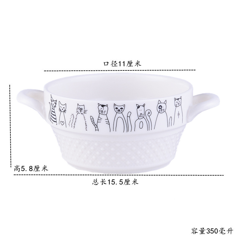 • 4.5inch 쌍귀 드릴 국수 그릇 고양이 스타일