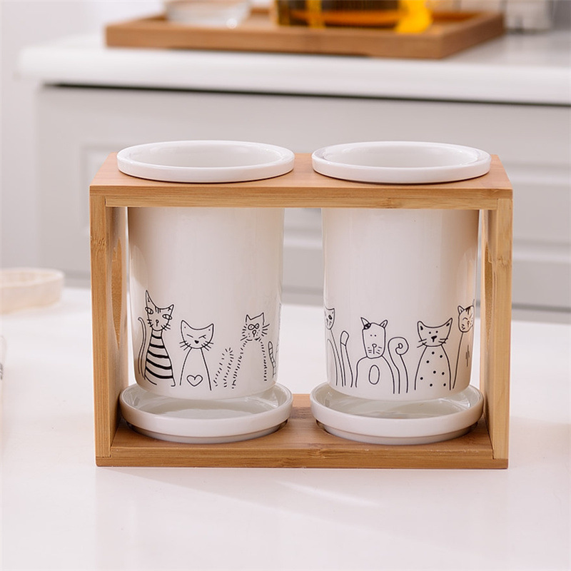 • 고양이풍 나무젓가락통 [이중통]