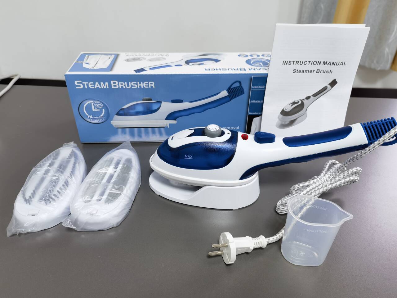 配件:主机、绒布刷、长毛刷、量水杯、底座、说明书(中性英文包装,英文说明书)