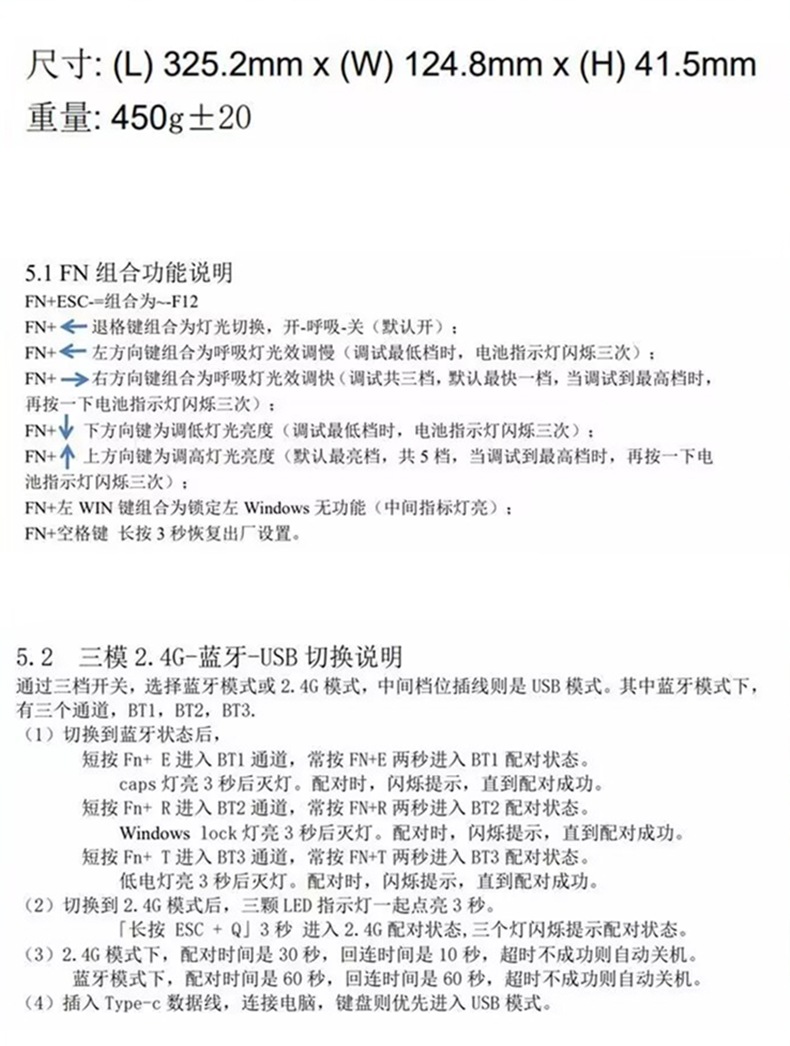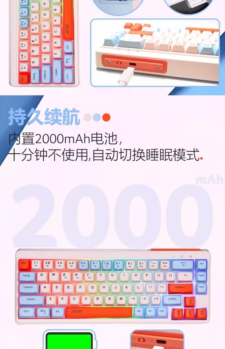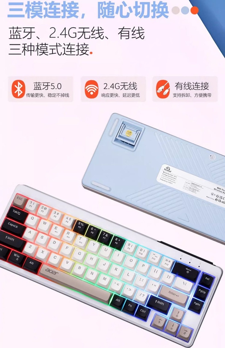 에이서 OKW224 블루투스 2.4G 무선 유선 3모드 가정용 키보드 발광 유선 컴퓨터 키보드