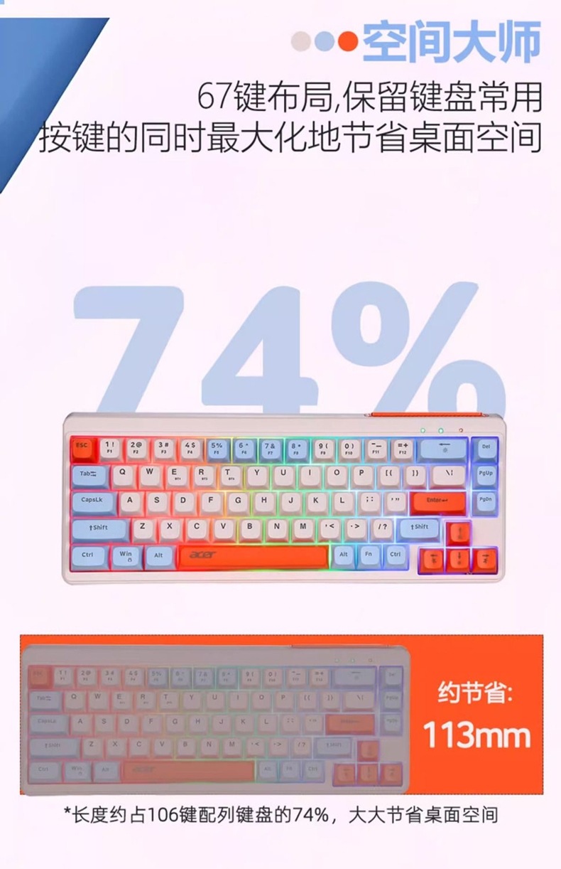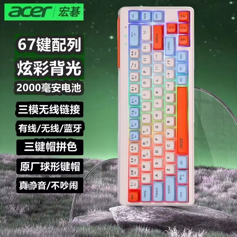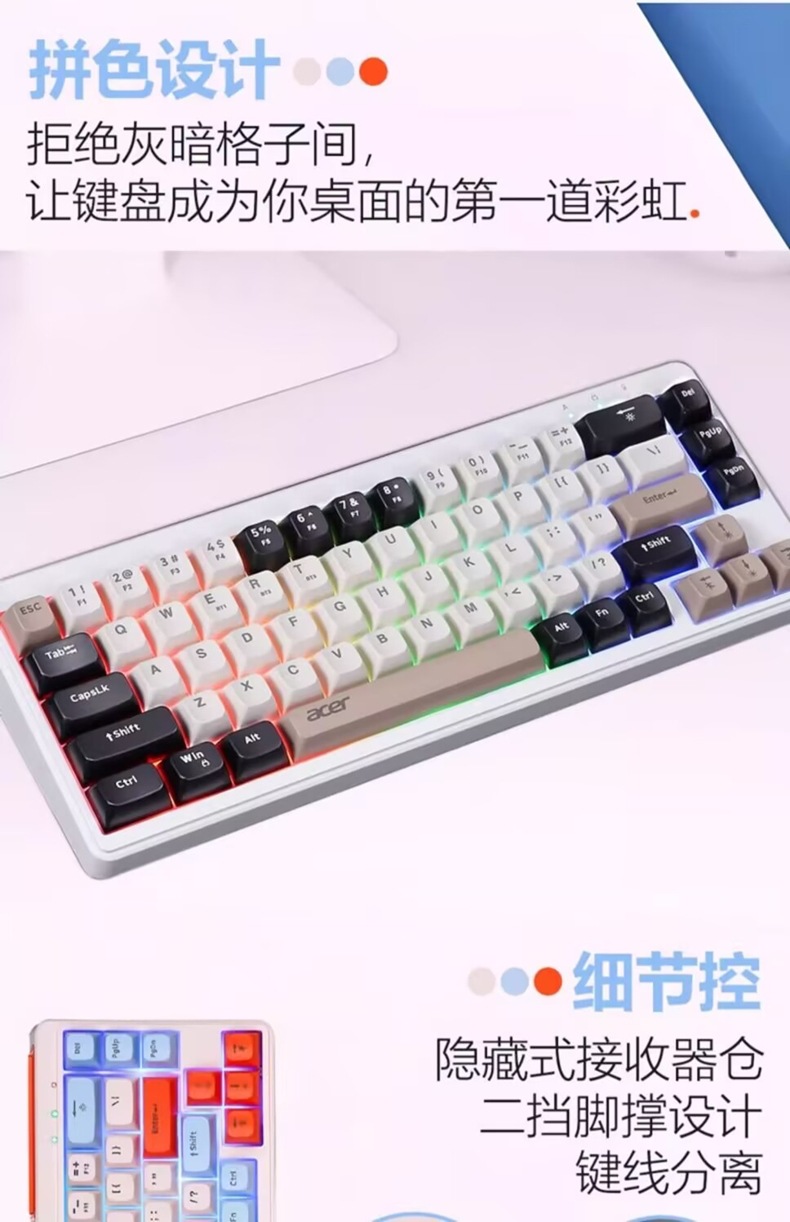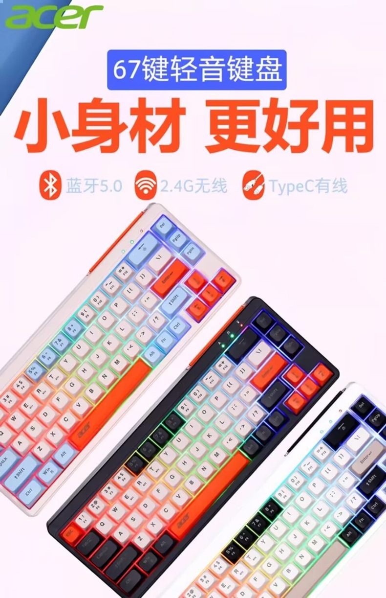 에이서 OKW224 블루투스 2.4G 무선 유선 3모드 가정용 키보드 발광 유선 컴퓨터 키보드스토어 가기