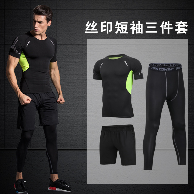 남성 스포츠 러닝복 속건 타이츠 트레이닝복 5종 세트 남성 짐웨어 피트니스복 반팔