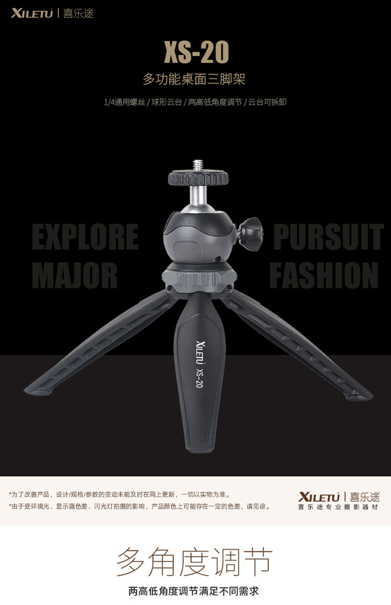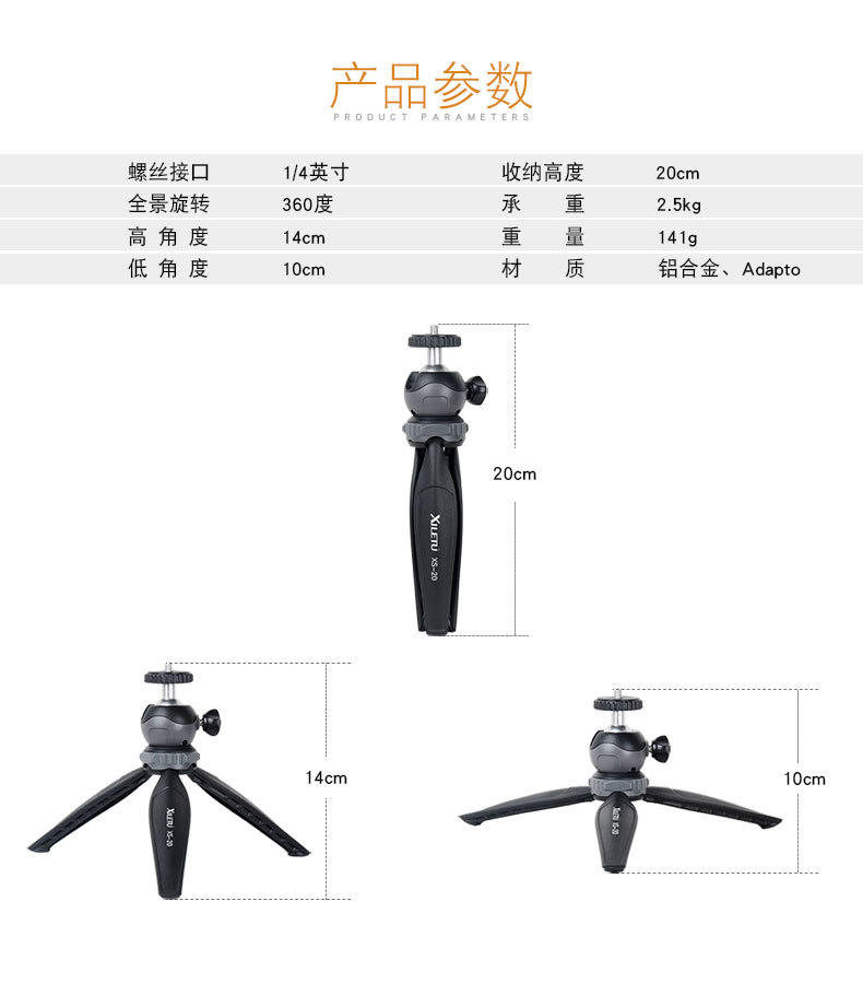 Xiletu XS-20 데스크탑 삼각대 미니 삼각대 휴대 전화 마이크로 단일 카메라 라이브 프로젝터 브래킷