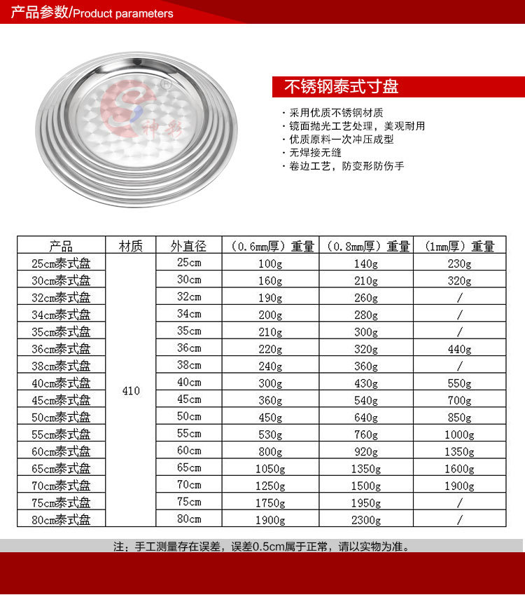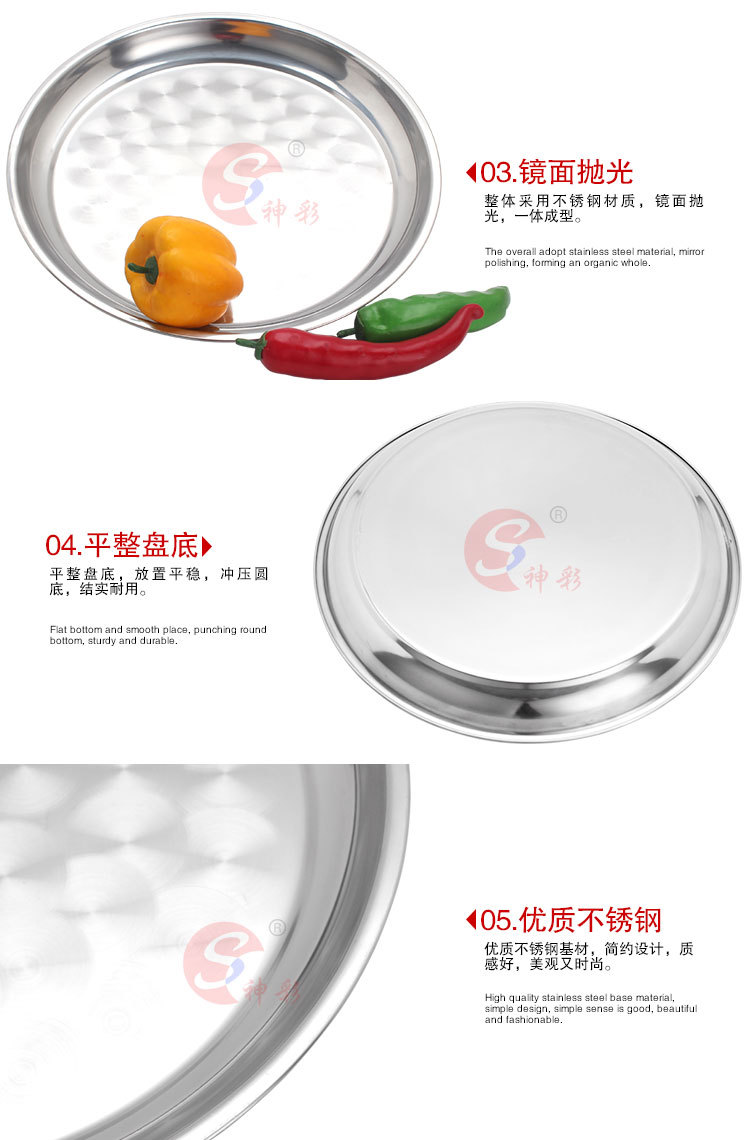 스테인리스 태국식 과일 접시, 식사 접시, 트레이, 제조업체 직판, 호텔 용품, 25-80cm, 두껍고 내구성 있음스토어 가기
