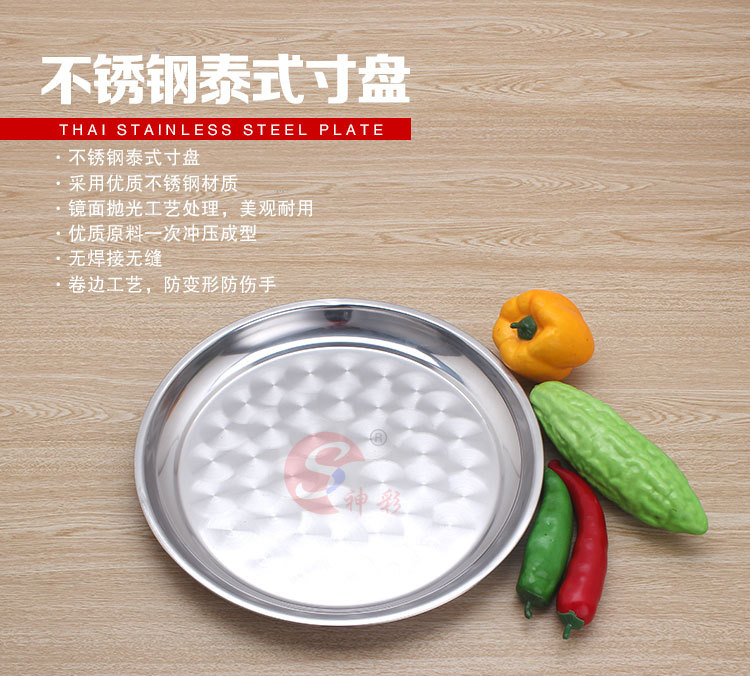 스테인리스 태국식 과일 접시, 식사 접시, 트레이, 제조업체 직판, 호텔 용품, 25-80cm, 두껍고 내구성 있음
