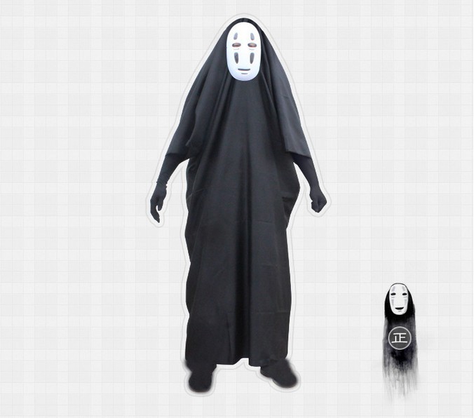 도매 크로스 보더 미야자키 하야오와 치히로 얼굴없는 남성 코스프레 만화 의류 + 마스크 장갑 풀 세트 할로윈
