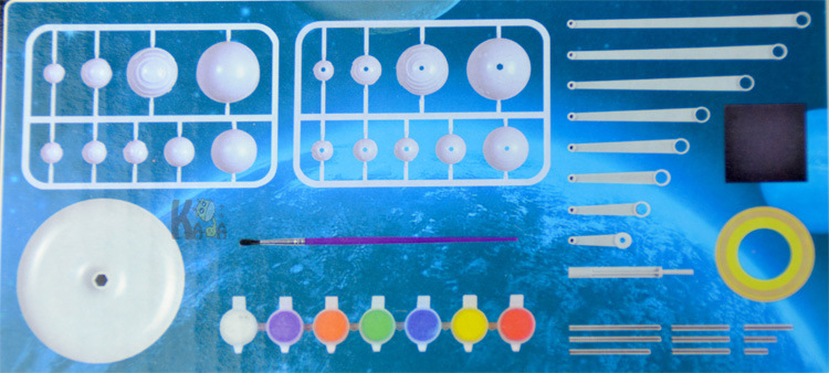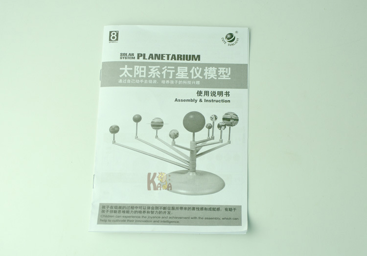 本品用于太阳系天体的构成及其运转的学习和探究。组装你自己的太阳系行星仪模型!你还可以给它涂上颜色,看着这30厘米的模型在黑暗中发光,这是多么神奇!